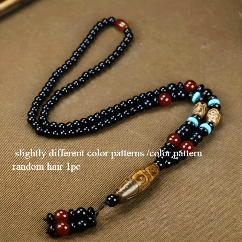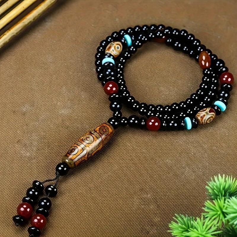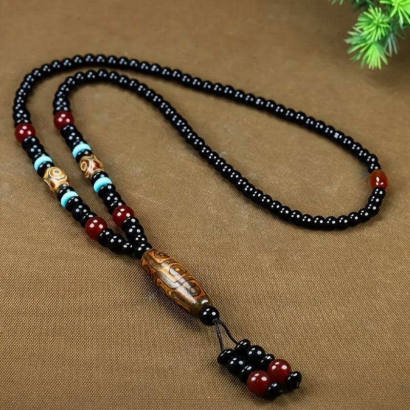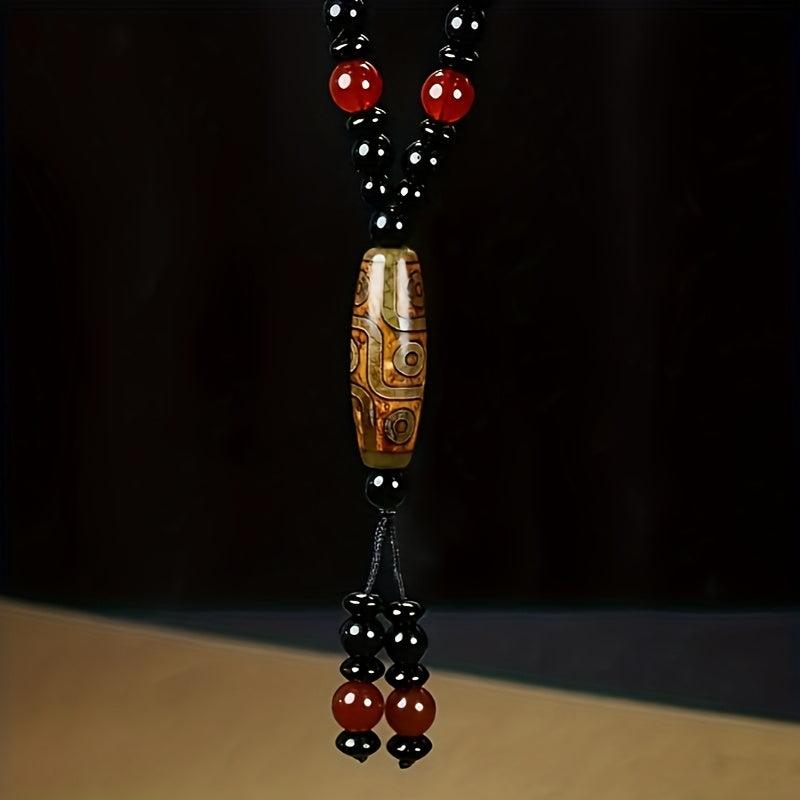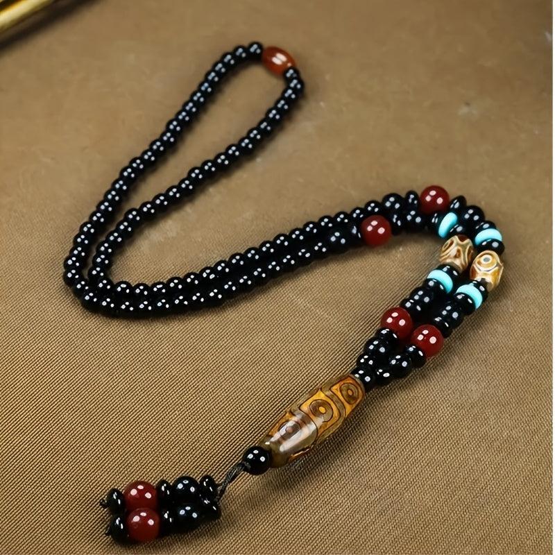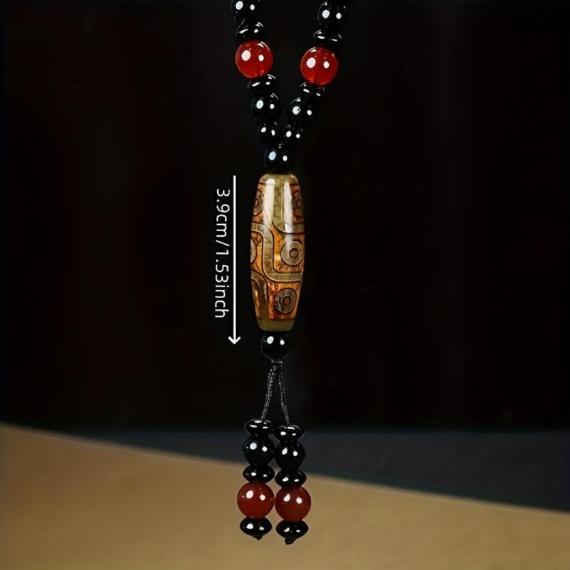 Tibetan Style Nine Eye Antique Beaded Necklace with Onyx Red Beads
