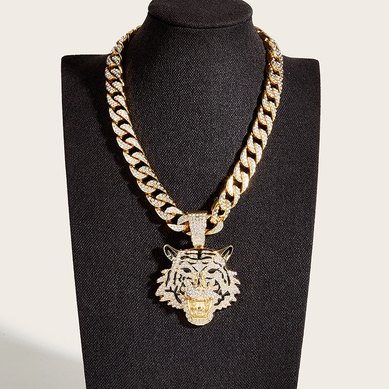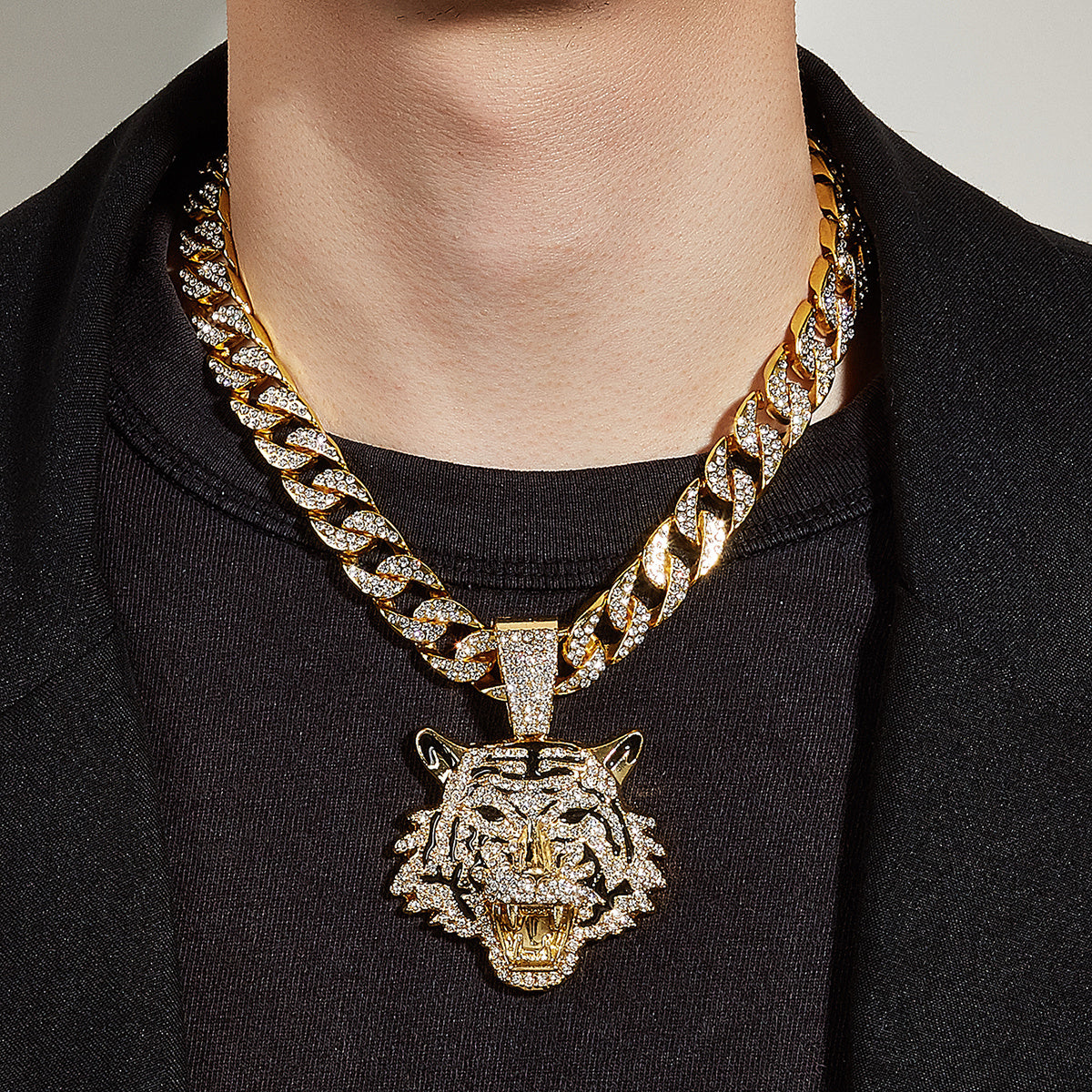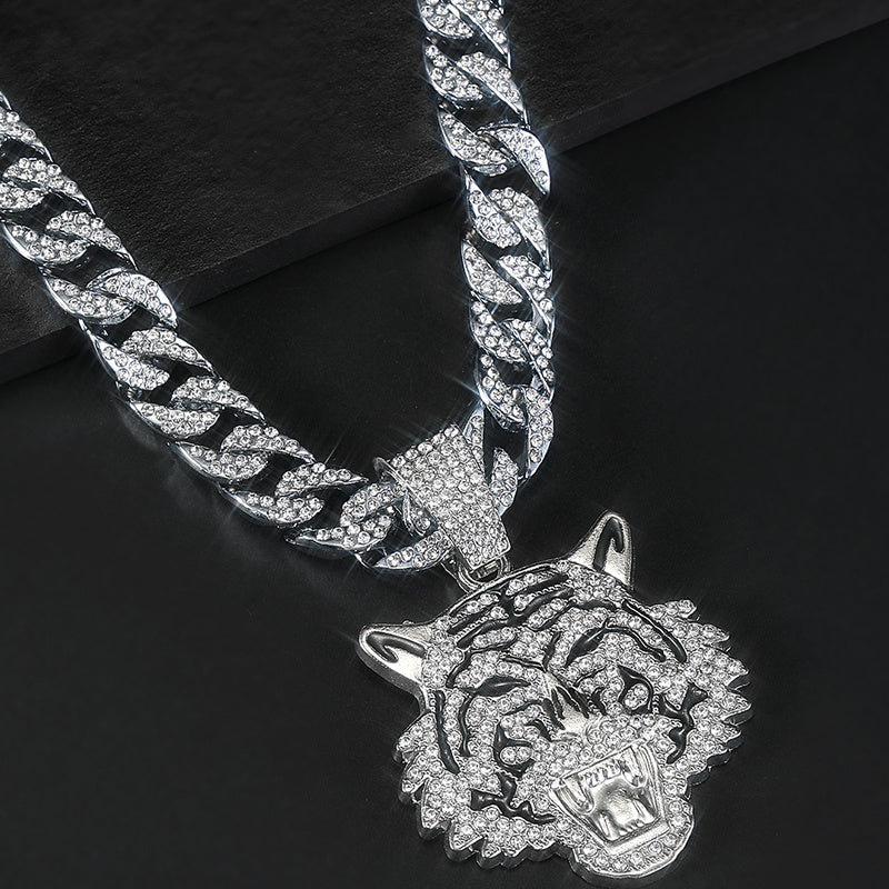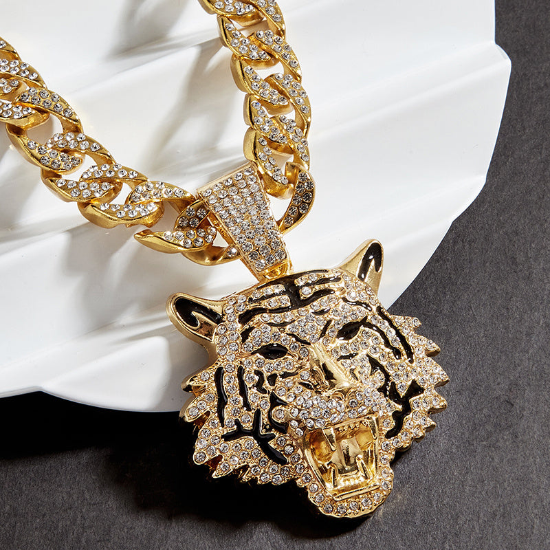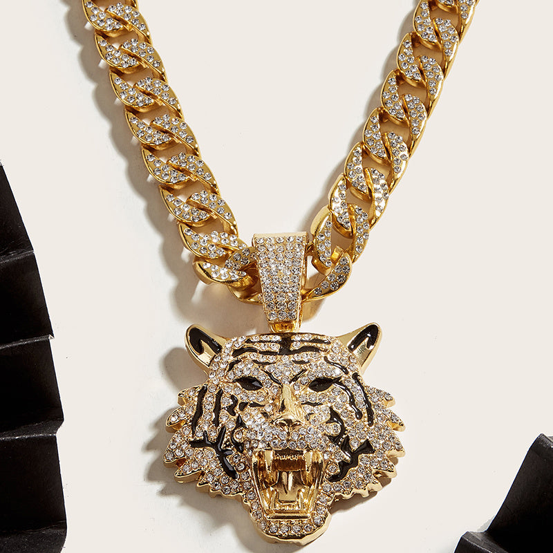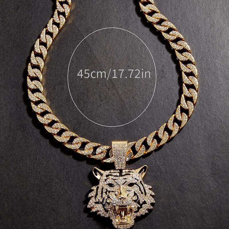 Make a bold statement with this Tiger Head Pendant Necklace on a stylish Cuban chain. Perfect for hip hop enthusiasts and streetwear fans.
