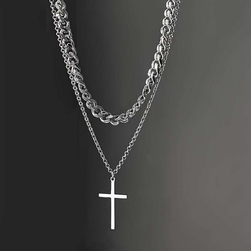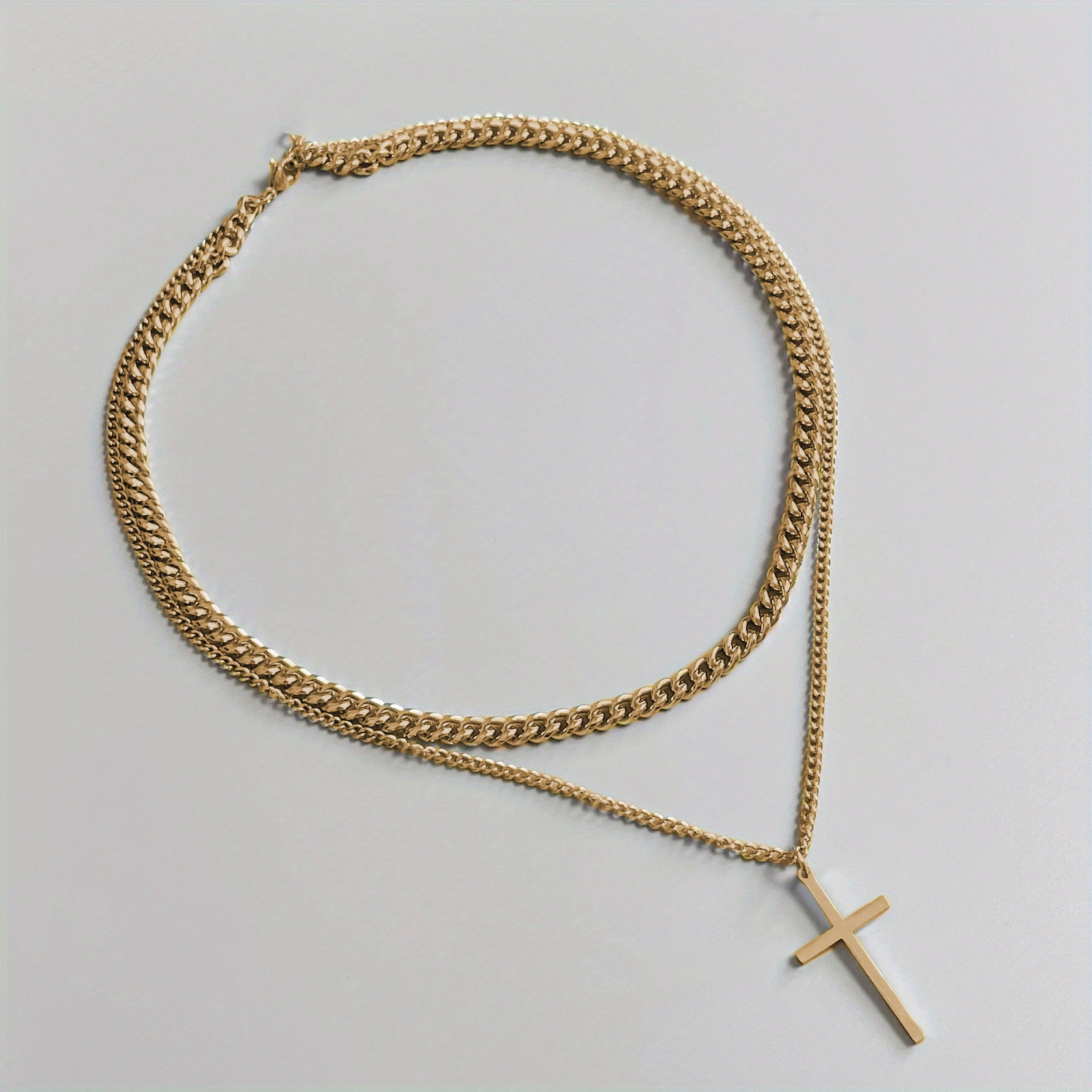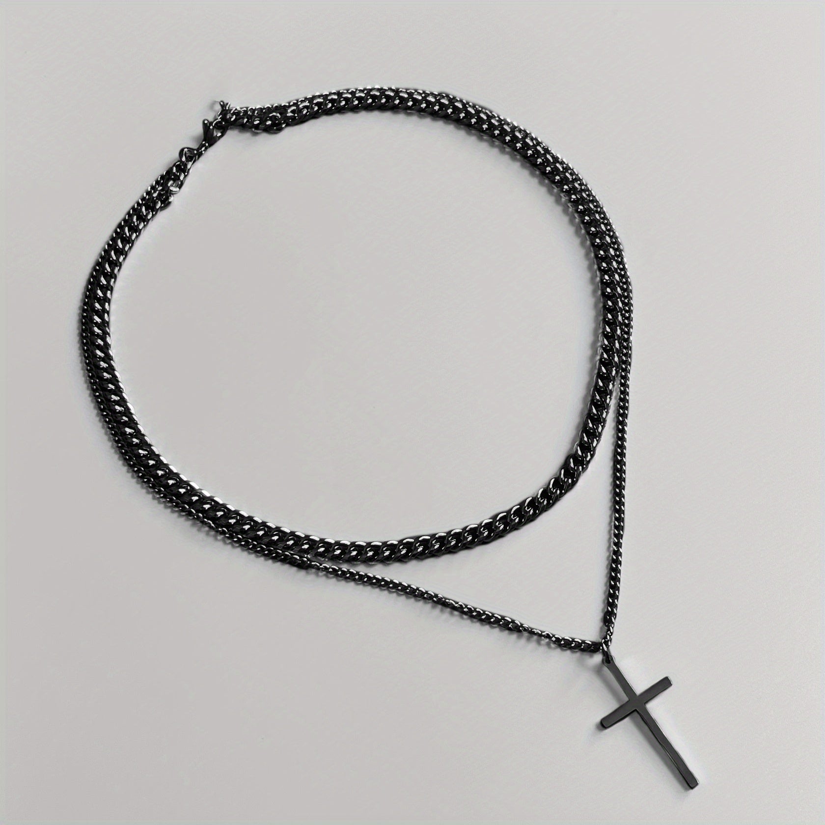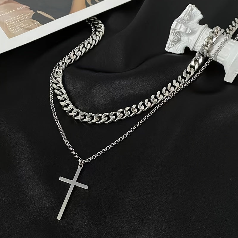 This stylish double layer cross charm necklace is made of titanium steel, perfect for hip hop fashion. It can be worn as a sweater chain accessory.