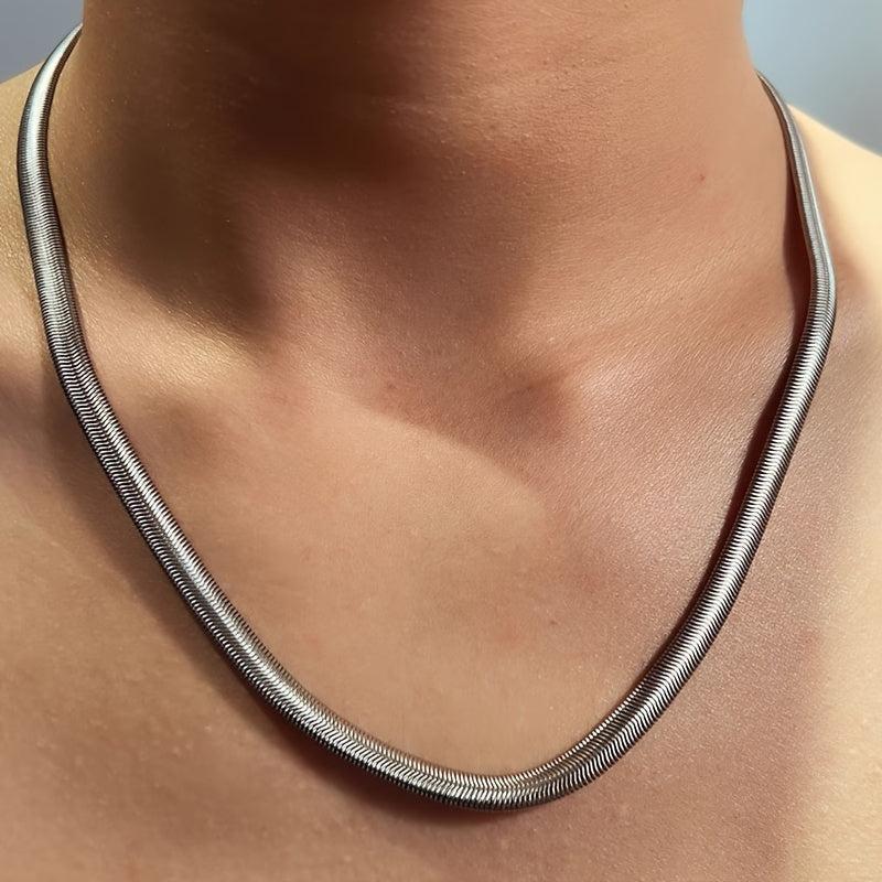 Elevate your style with this hip hop inspired snake bone chain necklace made of titanium steel. A bold statement piece for men.
