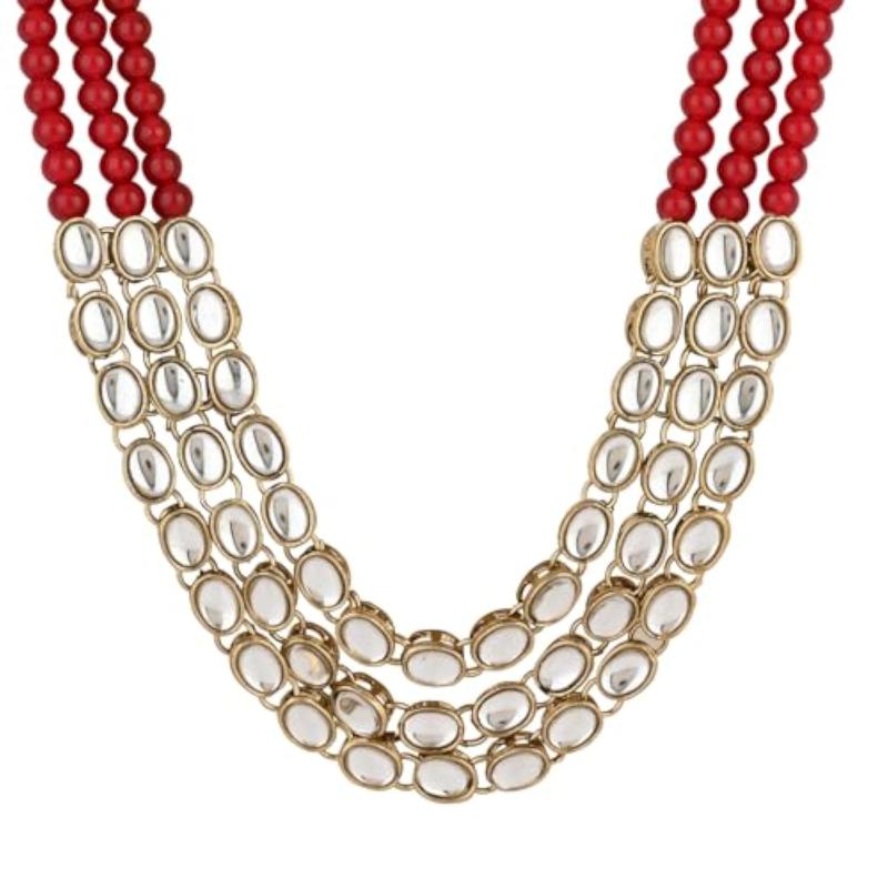 This layered Dulha Moti Mala features intricate beadwork and a Maharaja Haar design. It adds a touch of elegance to the groom's outfit.