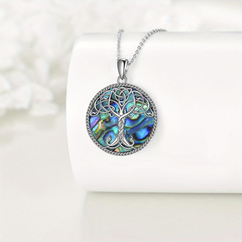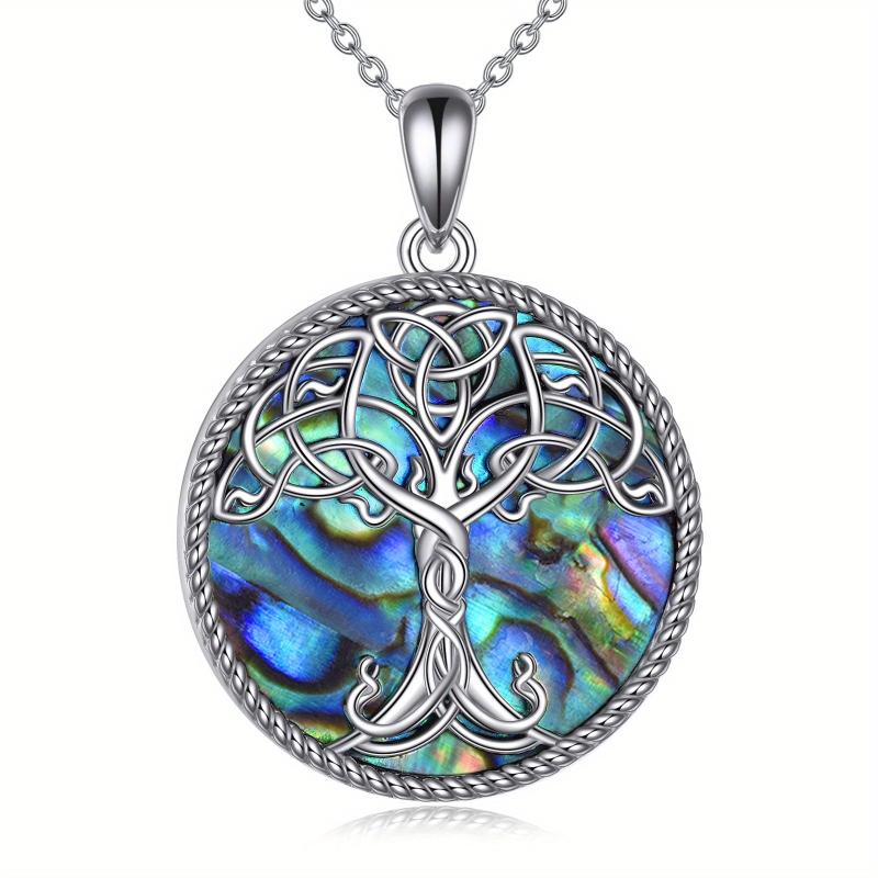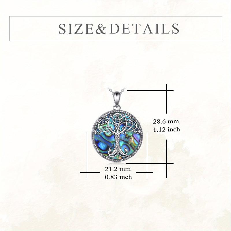 This stunning necklace features a Tree of Life design with intricate Celtic knot patterns crafted in 925 sterling silver and adorned with abalone shell. Perfect for both women and men.