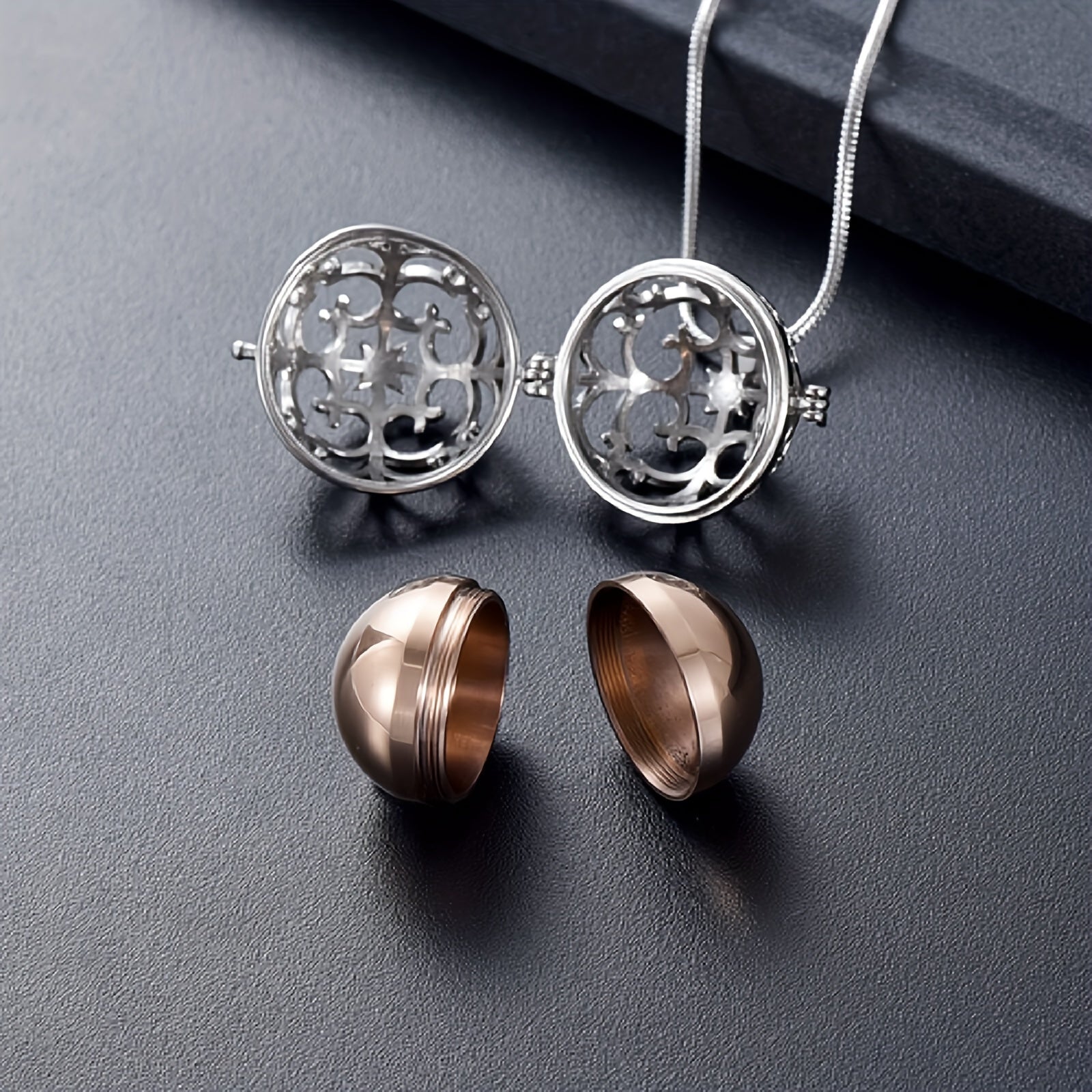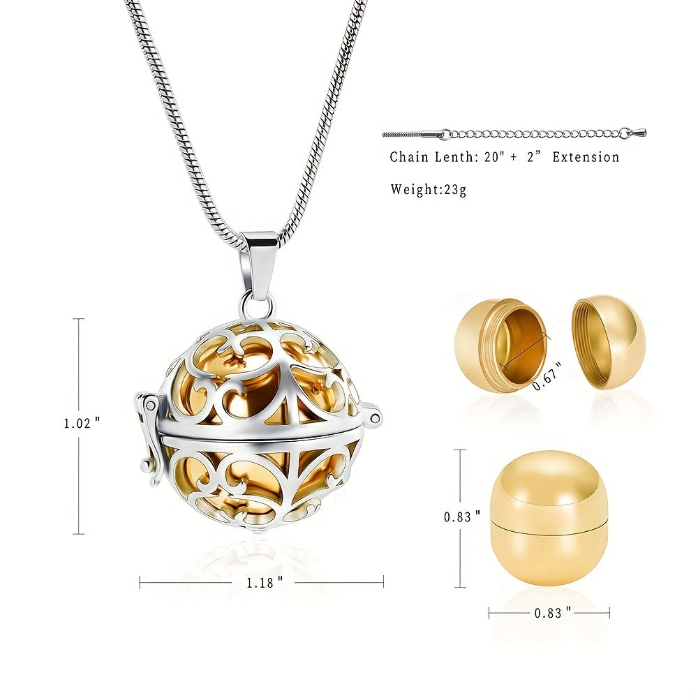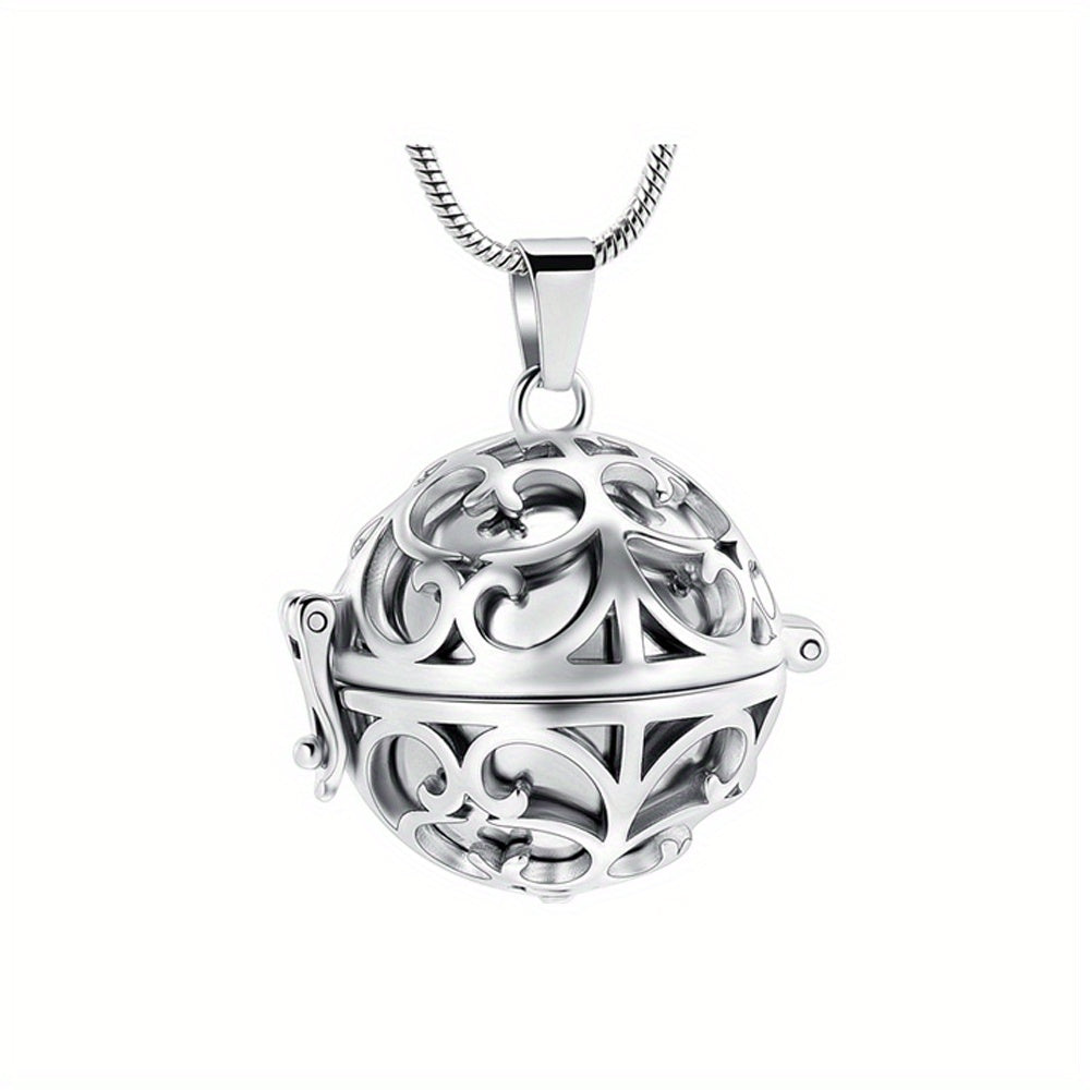 Keep your loved one close with this stainless steel hollow mini ball ashes urn necklace. Perfect for storing human or pet ashes, this memorial keepsake features a tree of life design.