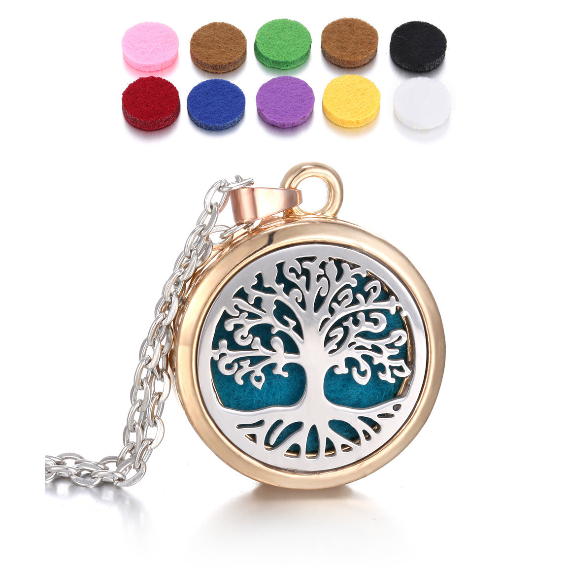 This pendant necklace features a Tree of Life design where you can add your favorite essential oil to enjoy the benefits of aromatherapy on-the-go.