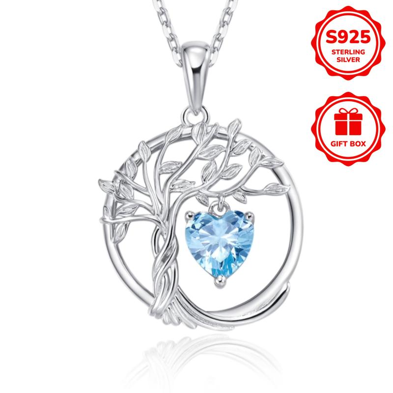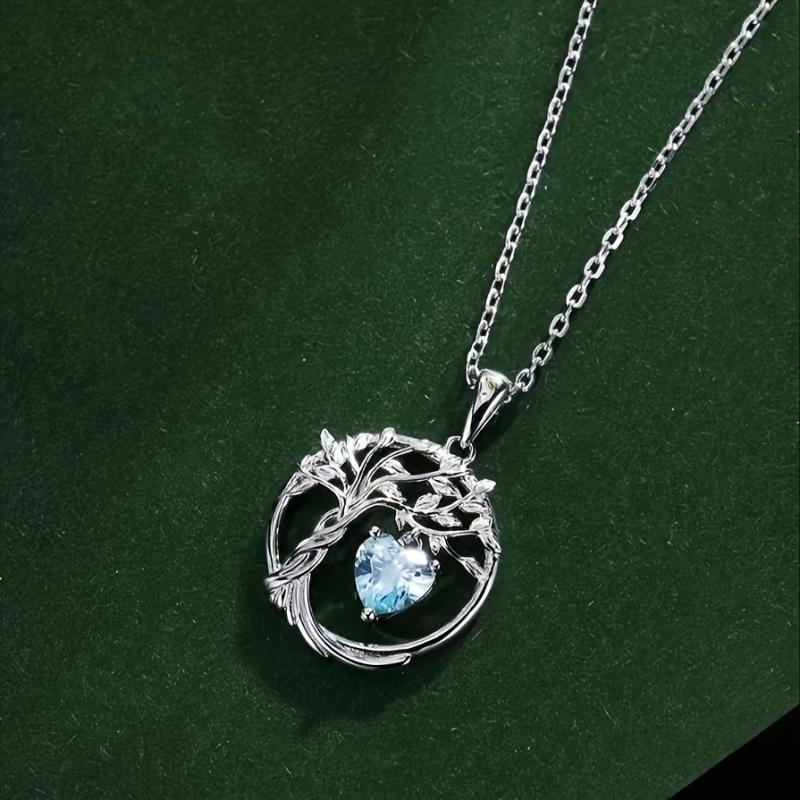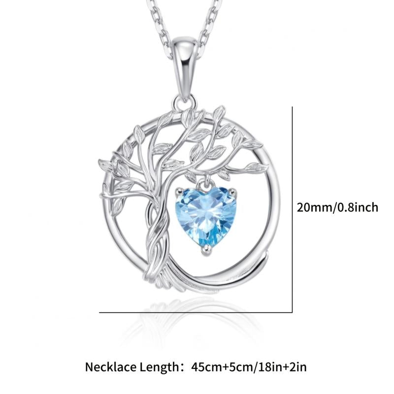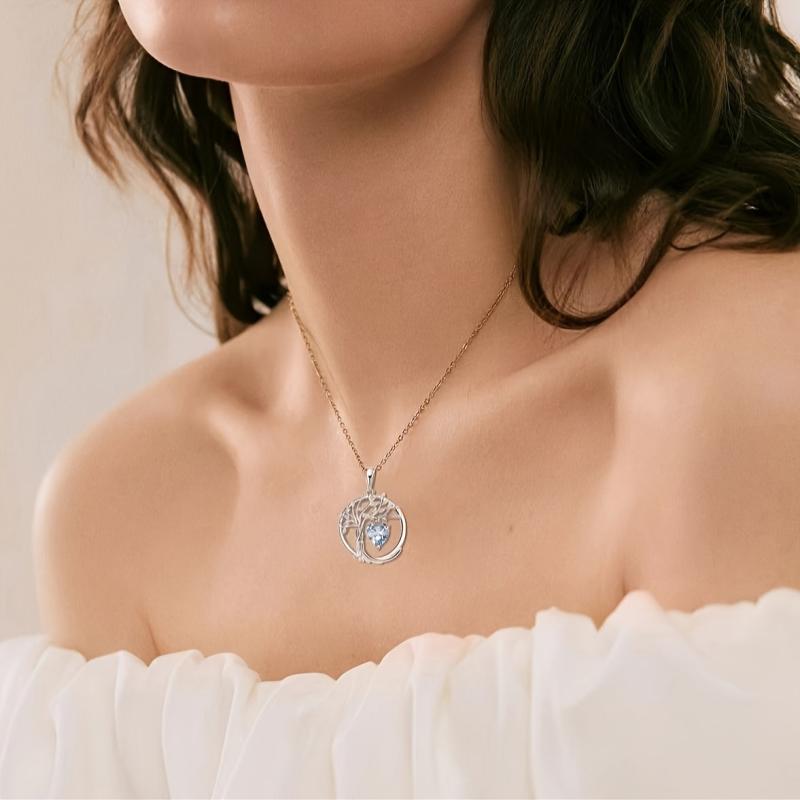 Elegant pendant necklace crafted from 4G S925 silver with a beautiful tree of life design and sparkling aquamarine zirconia. Versatile and stylish accessory perfect for gifting.
