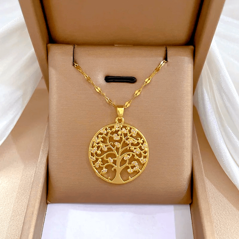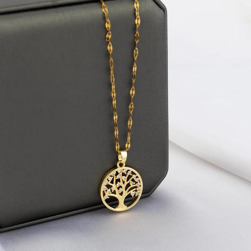 Tree of Life Pendant Necklace with Rhinestone Accents