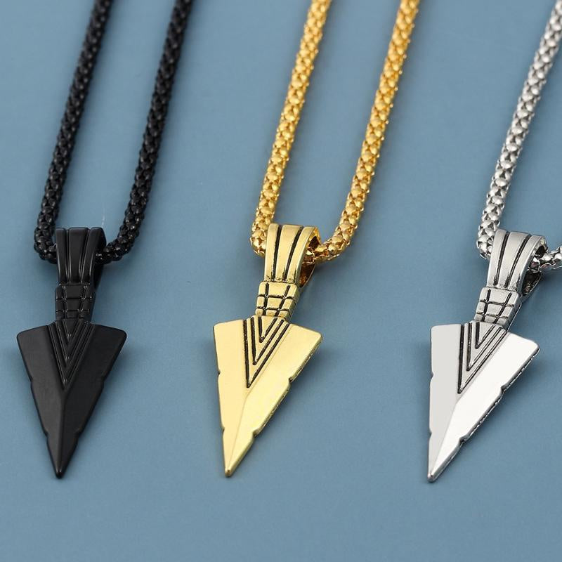 Enhance your style with this vintage men's arrow pendant necklace featuring a triangle spearhead design. Perfect accessory for any outfit.