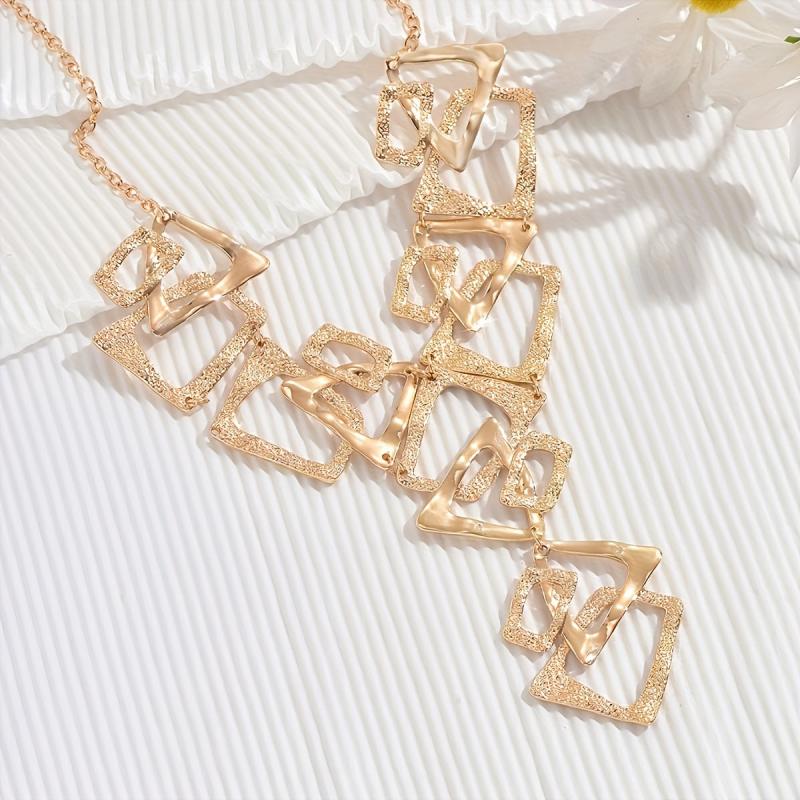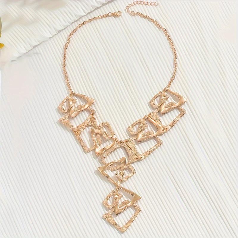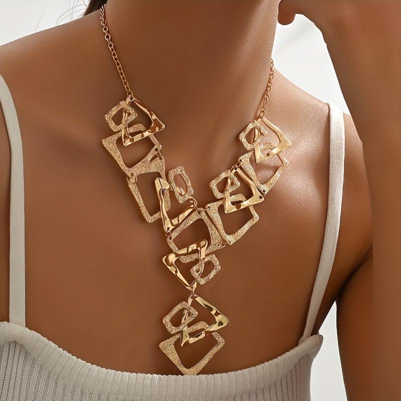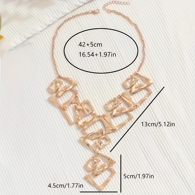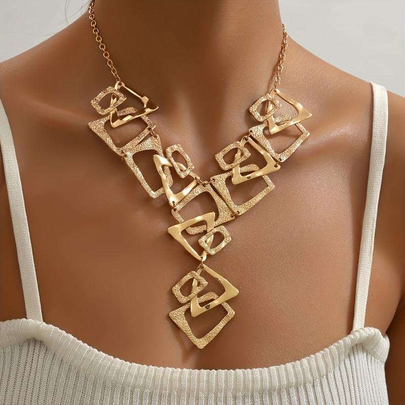 This Y necklace features a unique design with geometric triangle and square pendants, perfect for daily and party wear.