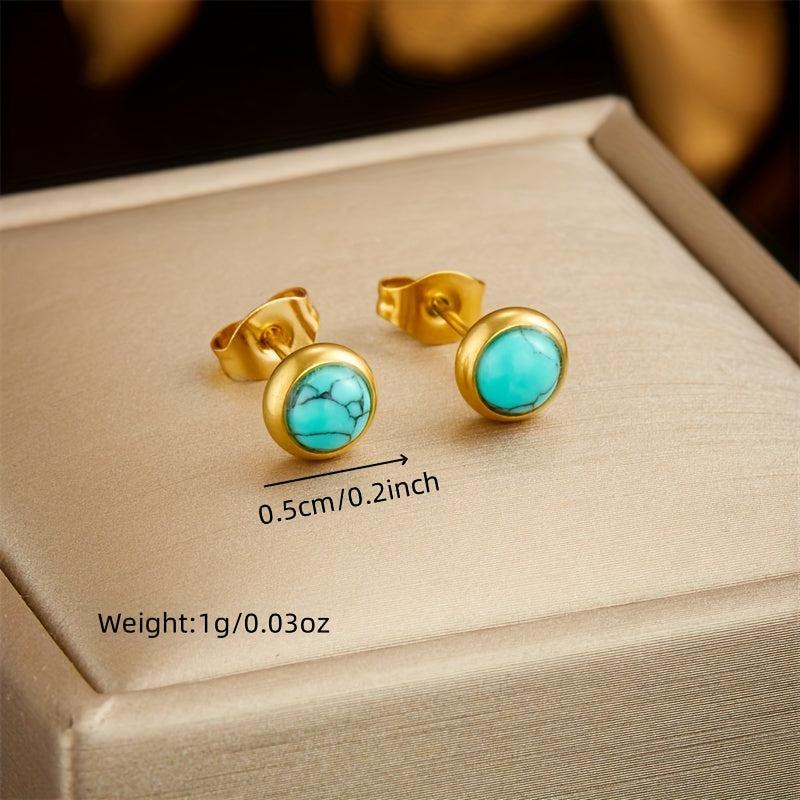 Add a touch of retro charm with this European and American niche jewelry set featuring a circular design in vibrant turquoise color. Made of high-quality stainless steel.