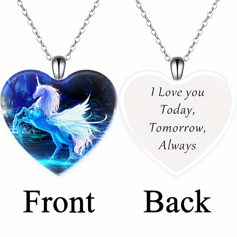 This beautiful heart-shaped crystal pendant necklace features a unicorn design, making it a perfect gift for Thanksgiving, Christmas, birthdays, and special occasions.