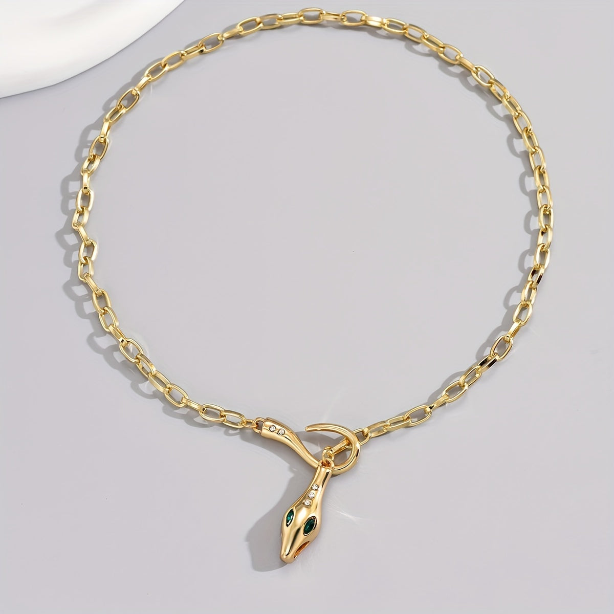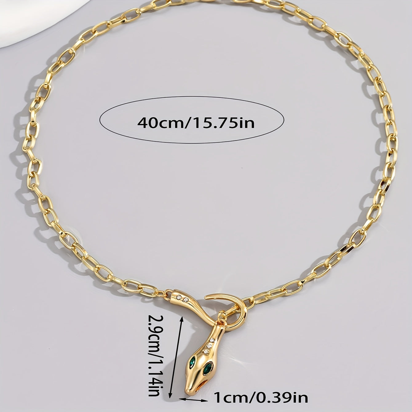 Elevate your style with this stunning snake-shaped pendant necklace featuring a golden paperclip chain. Made with high-quality materials, this 18K plated necklace is a show-stopper.