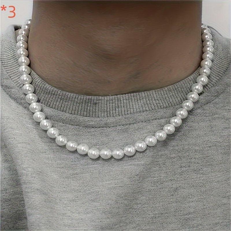 This unisex faux pearl necklace is a versatile accessory perfect for daily wear or special occasions. Made of plastic, it is a great gift for mothers and can be worn in all seasons.
