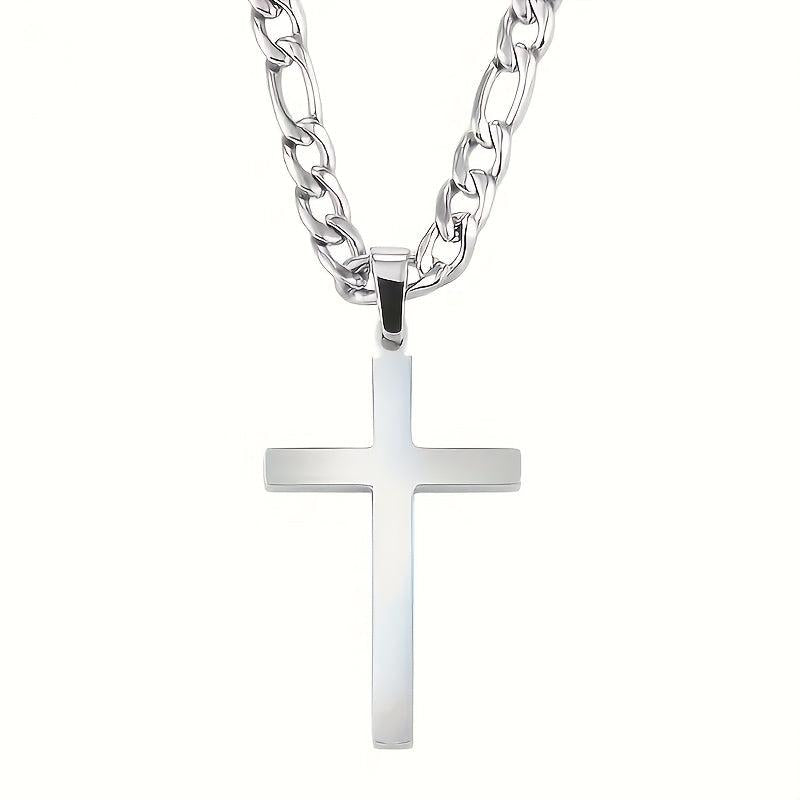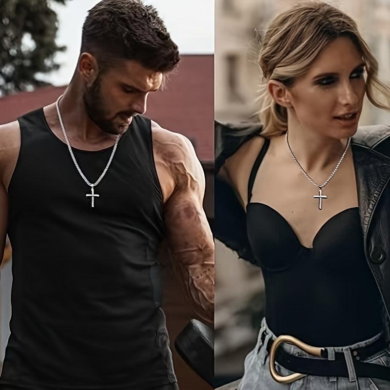 This stainless steel cross pendant necklace features an edgy hip hop style design that is perfect for men and women. It is durable and suitable for casual, party, or holiday wear. Makes a great gift!