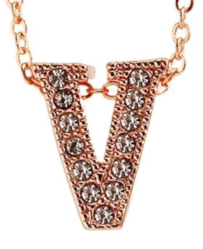 This stunning pendant necklace features the letter V, perfect for Valentine's Day or any occasion. A beautiful gift for loved ones.