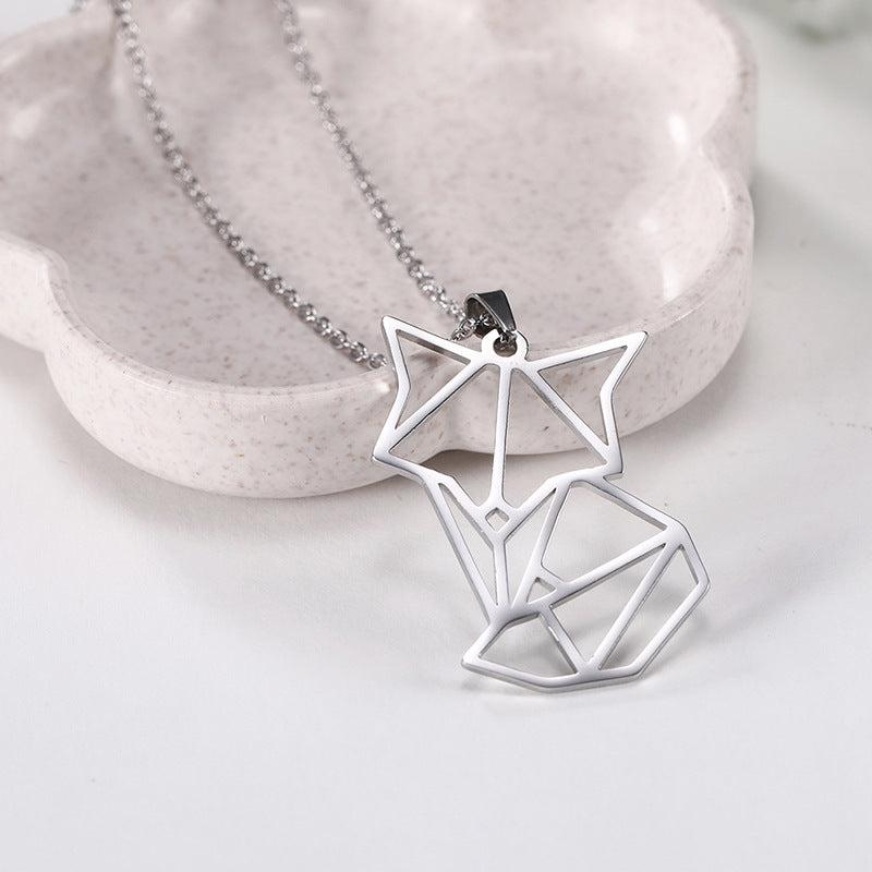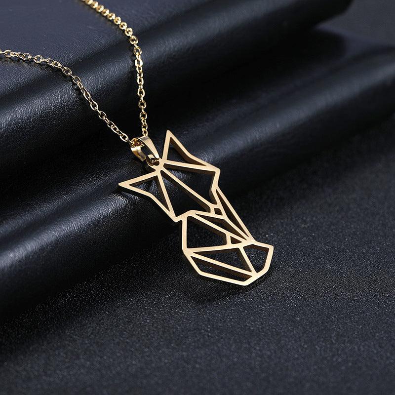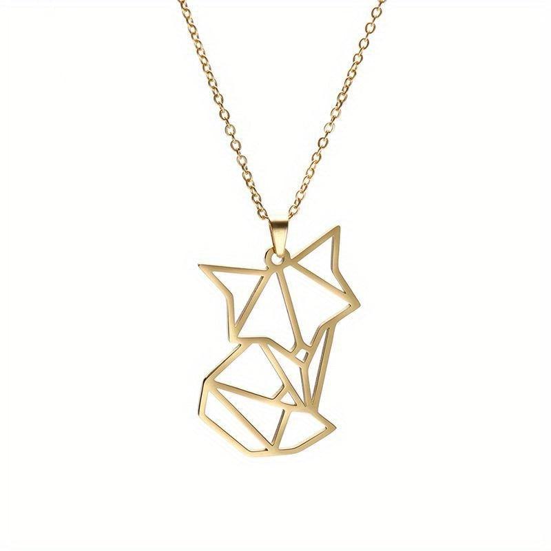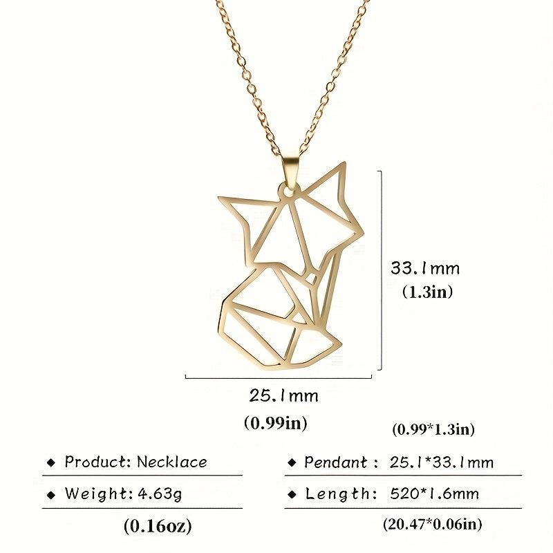 This men's pendant necklace features a geometric fox design in a stunning golden tone. Made from durable stainless steel, it is lightweight and perfect for casual and formal wear.
