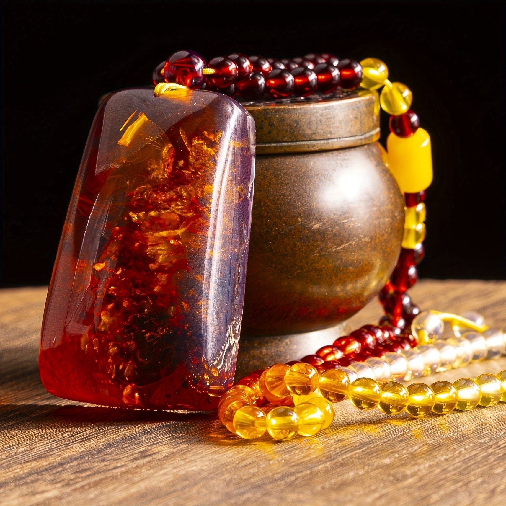 This high-end vintage amber pendant necklace features a beautiful gradient design that's perfect for everyday wear. Unisex design makes it a versatile accessory for any outfit.