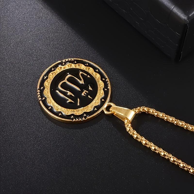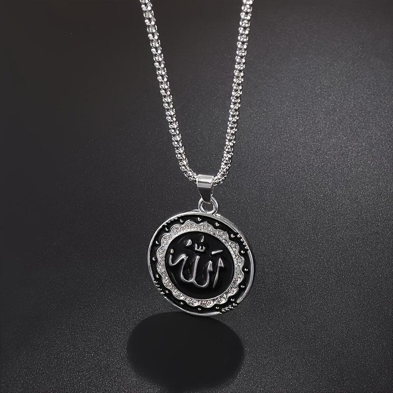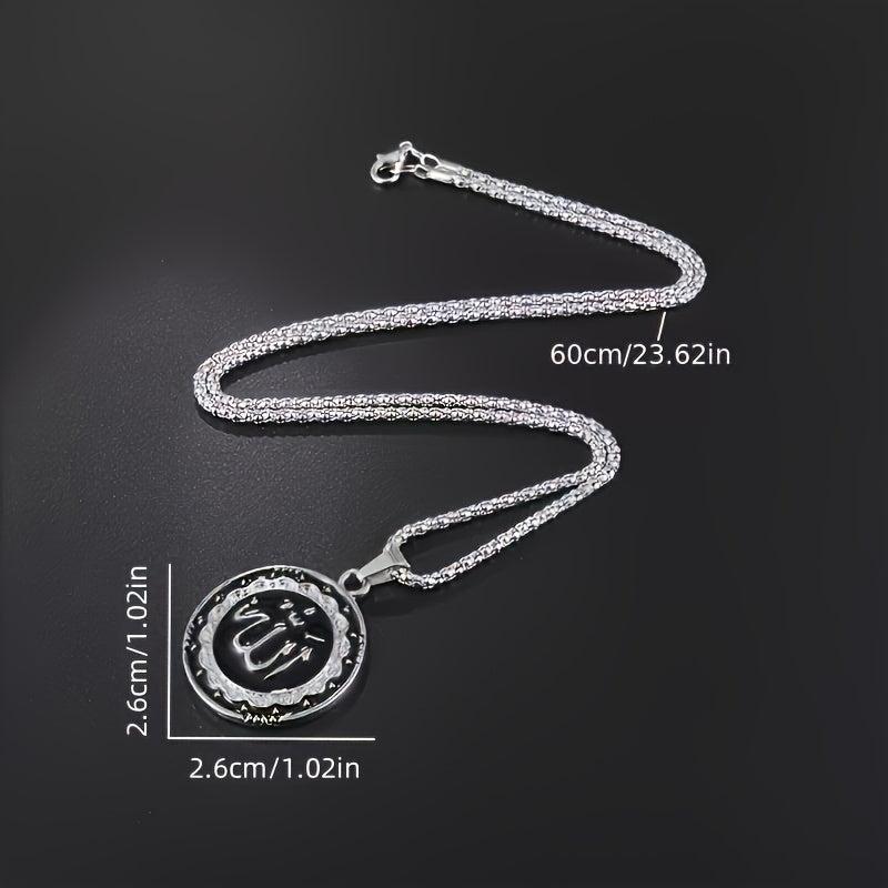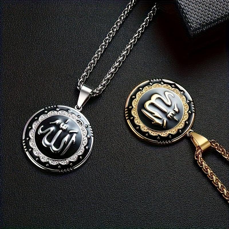 Elegant pendant featuring Quranic scripture in Arabic calligraphy with Arabic numerals. Ideal for casual or special occasions.