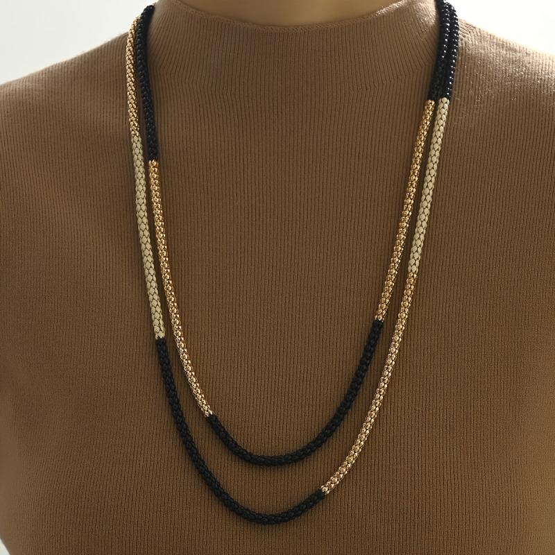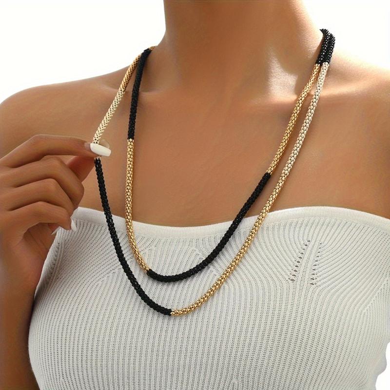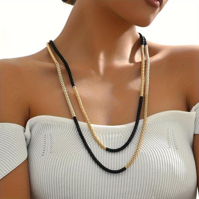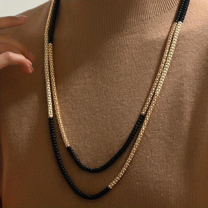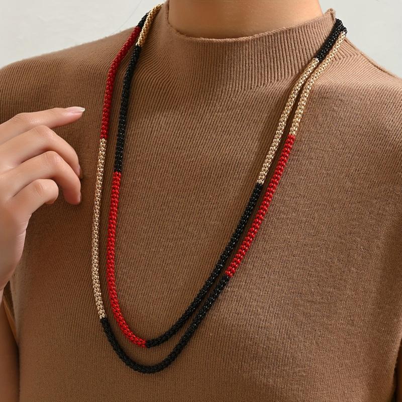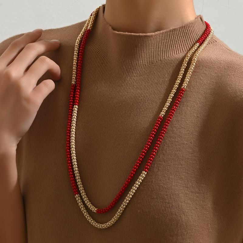 Elevate your casual attire or party look with this stunning long layered necklace featuring artificial jade and beaded chains. Makes a perfect Mother's Day gift.