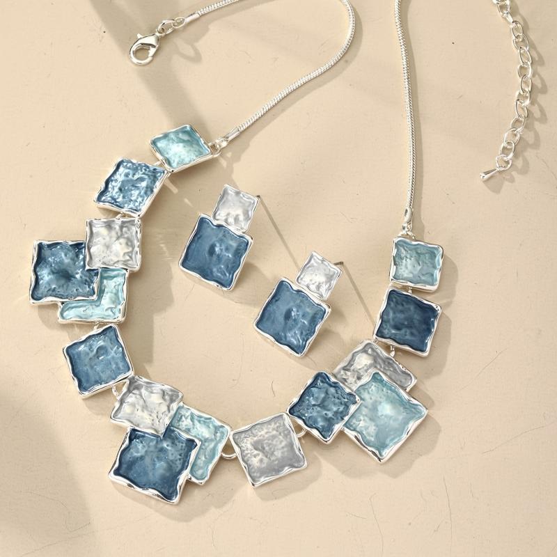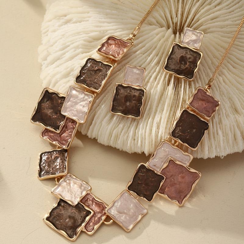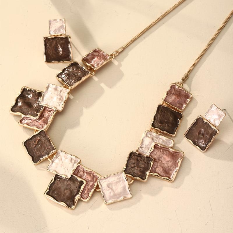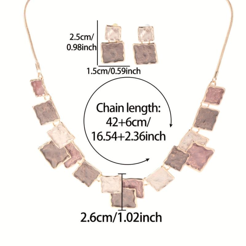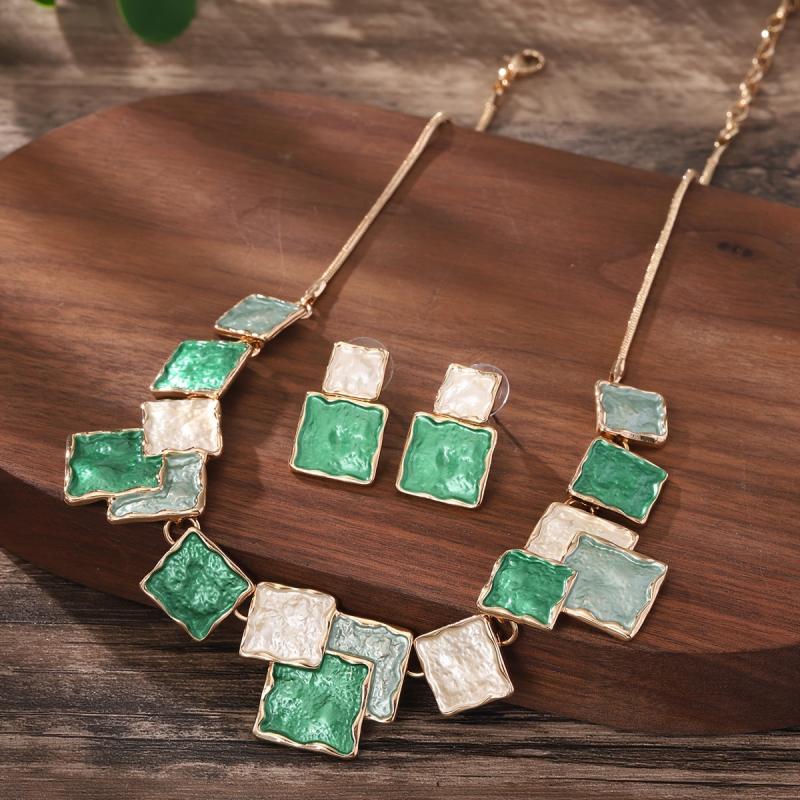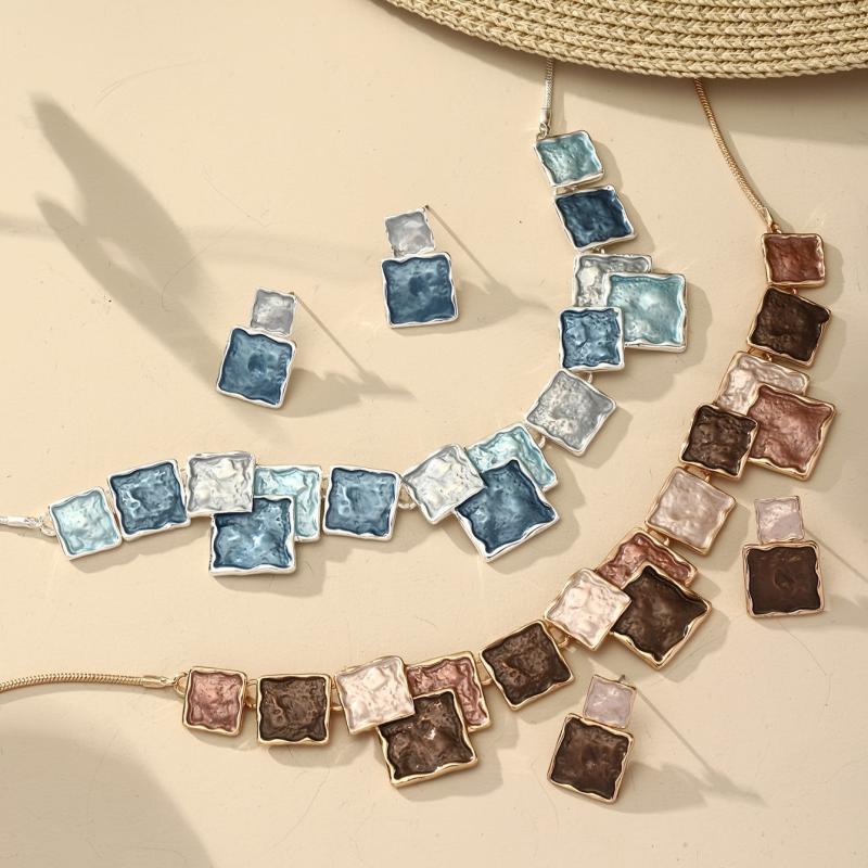 This 2pcs earrings and 1 necklace set features a vintage boho design made of zinc alloy with enamel. Perfect accessory for daily wear and special occasions.