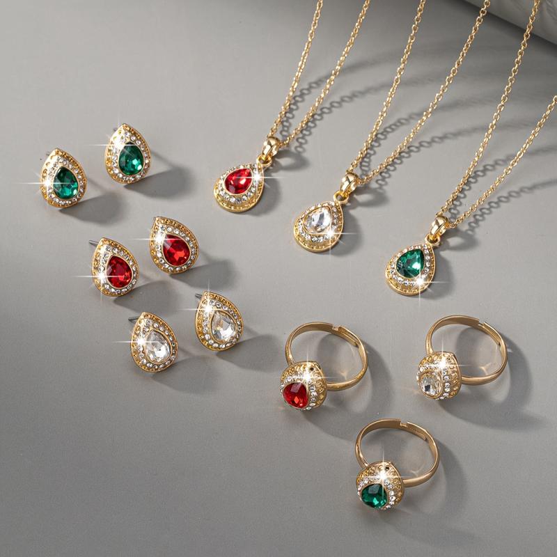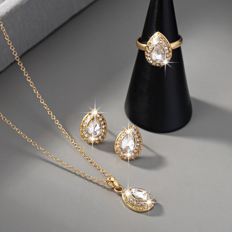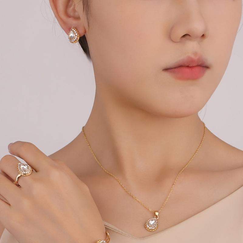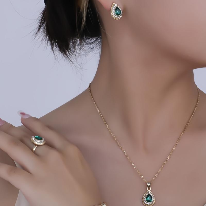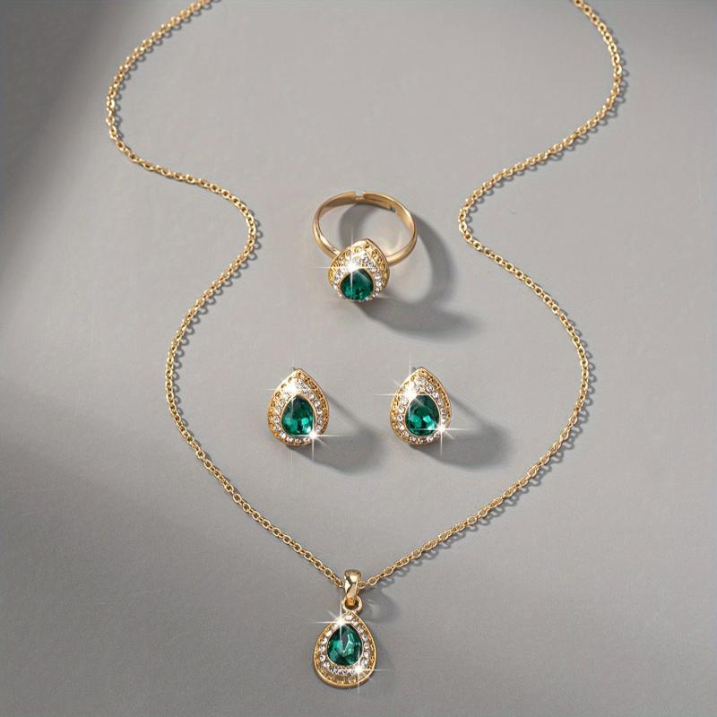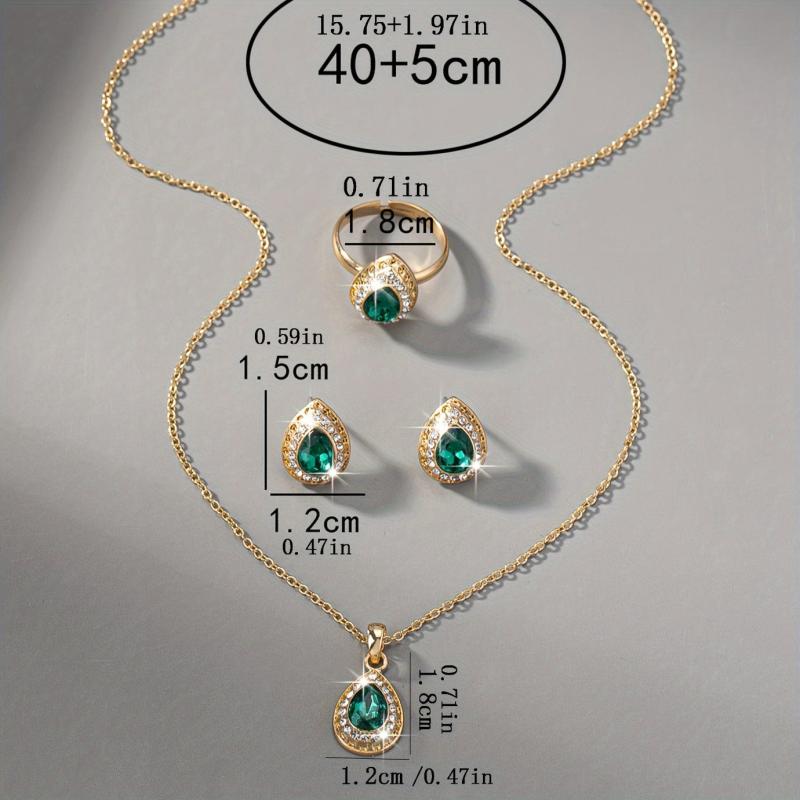 Complete your wedding attire with this elegant vintage bridal jewelry set. The set includes a teardrop synthetic gemstone pendant necklace, earrings, and a matching ring for a festive holiday, birthday party, or wedding accessory for women.
