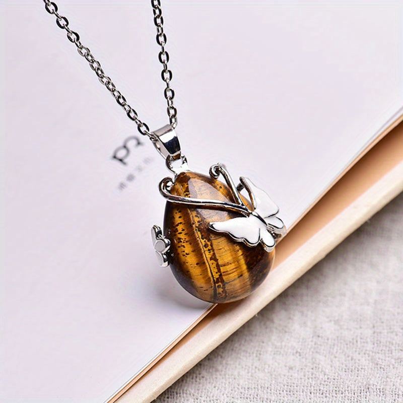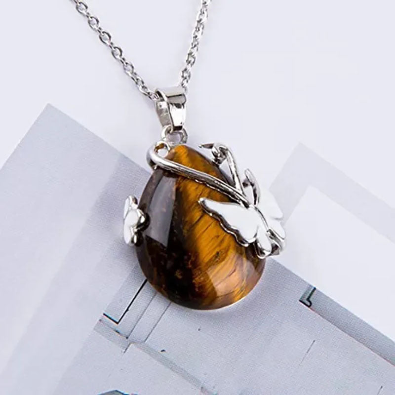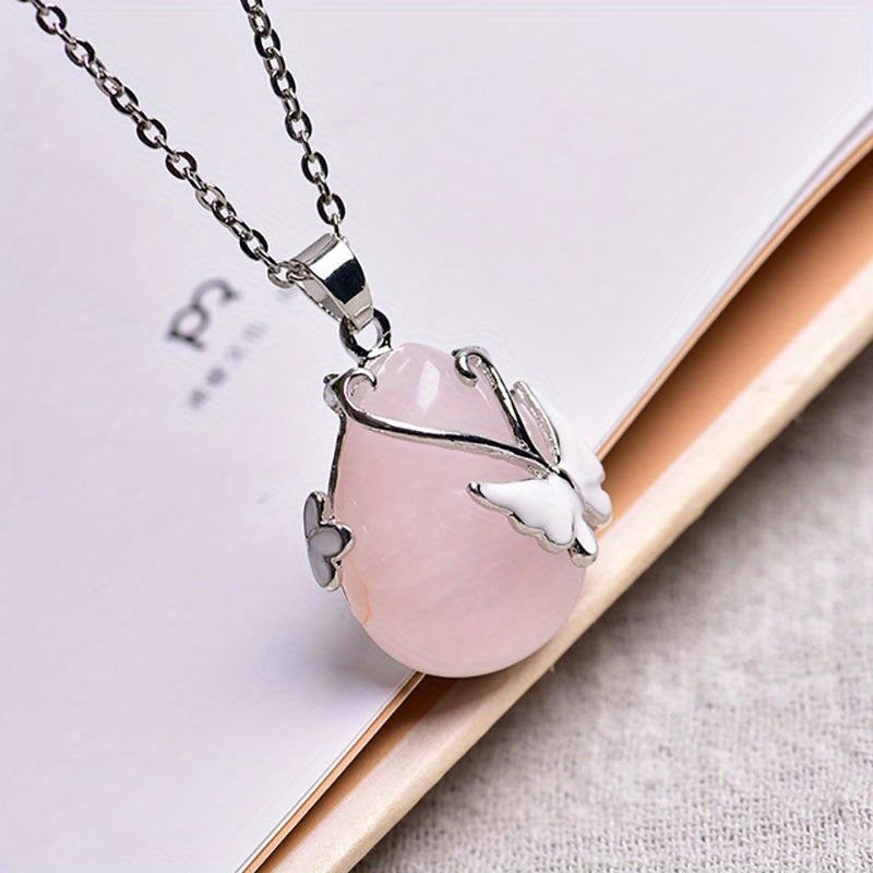 Beautiful wire wrap butterfly pendant with rose quartz, amethyst, and opalite healing crystals.