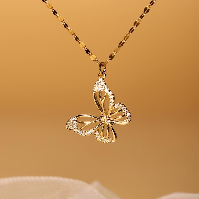 Add a touch of elegance with this vintage butterfly pendant necklace. The golden tone accents make it perfect for casual attire and gift giving.