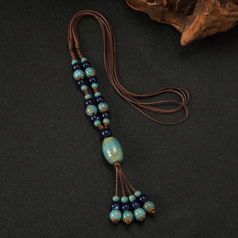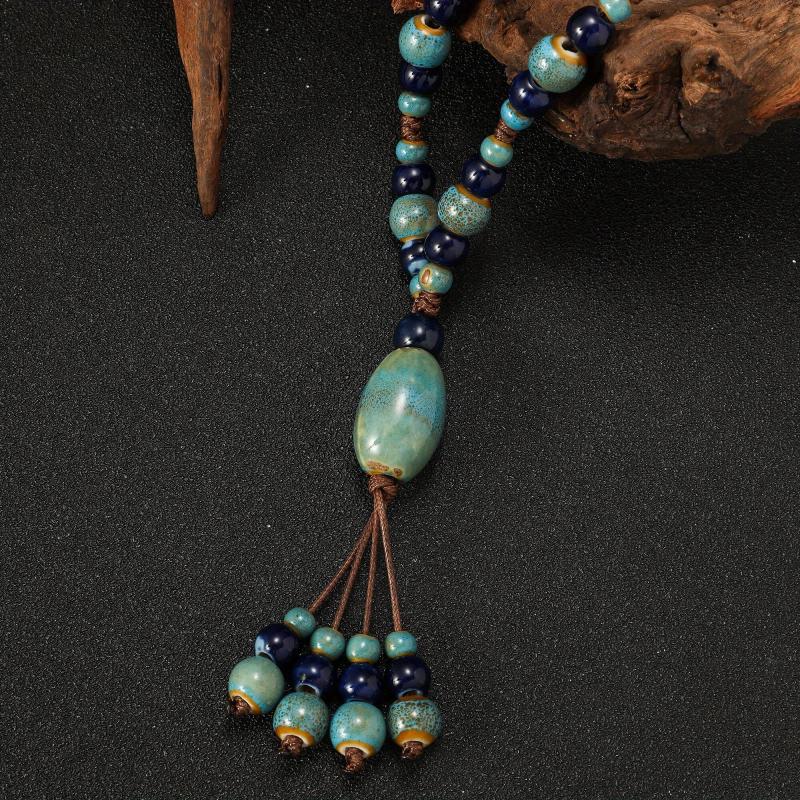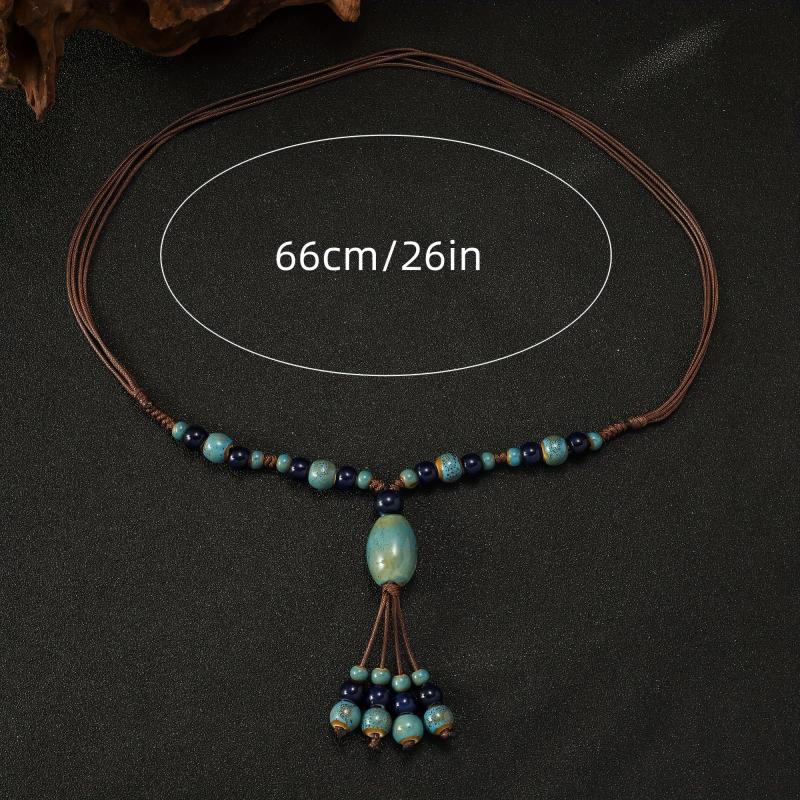 Embrace a touch of vintage charm with this ethnic style handwoven ceramic beaded men's necklace. Adjustable design for a perfect fit.