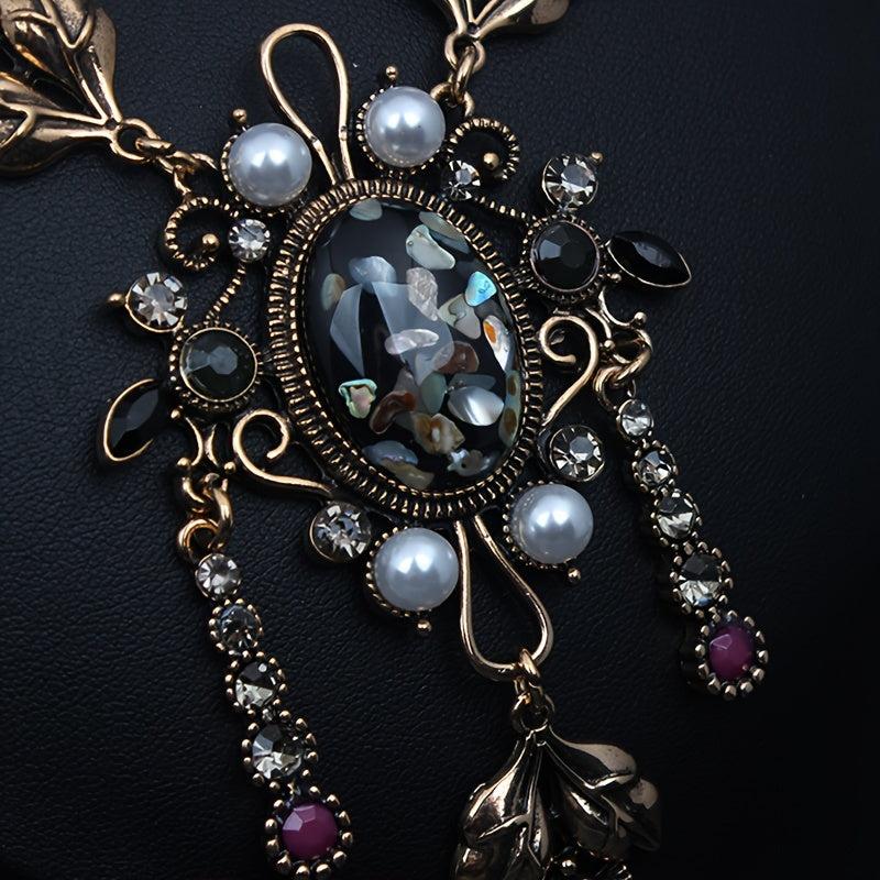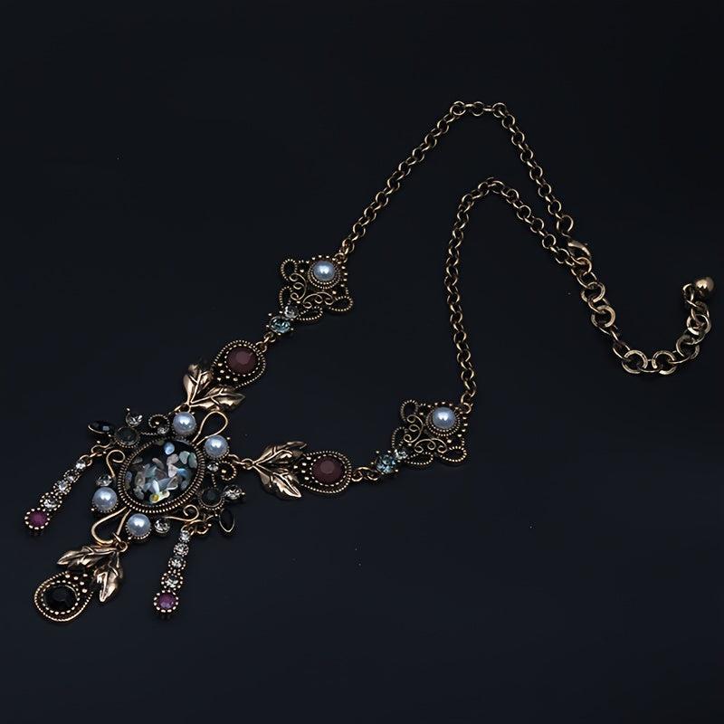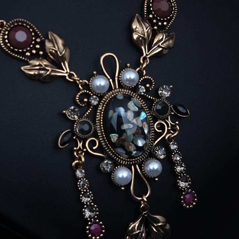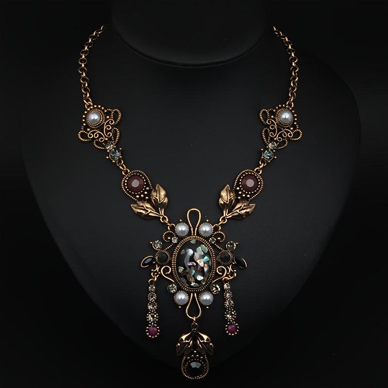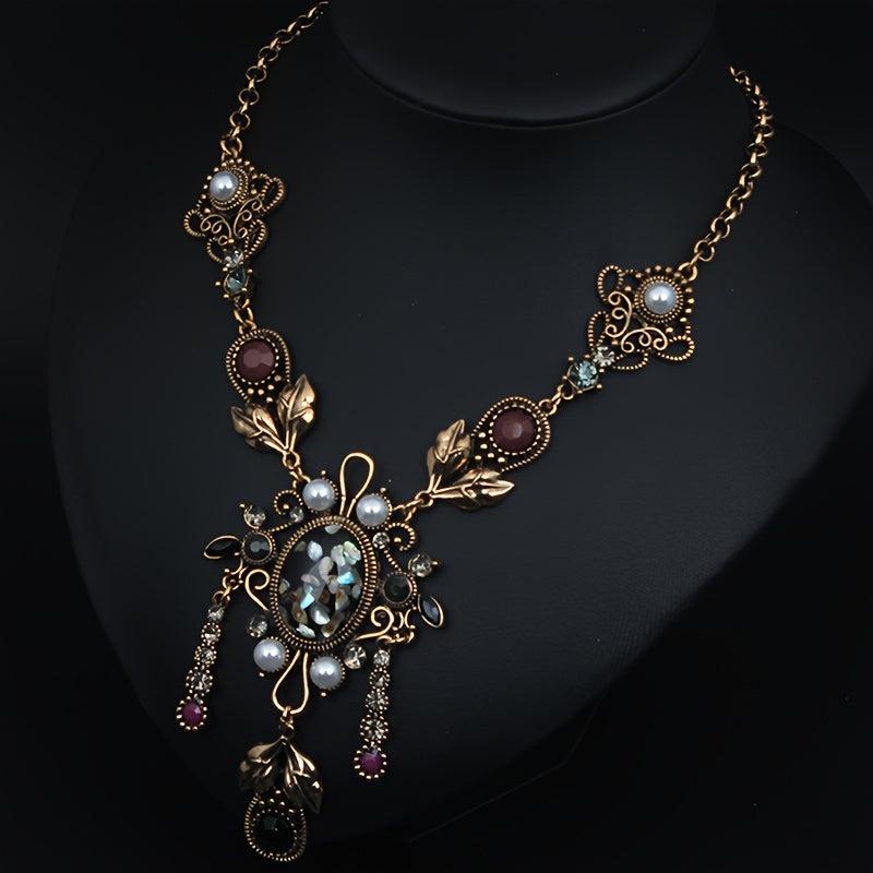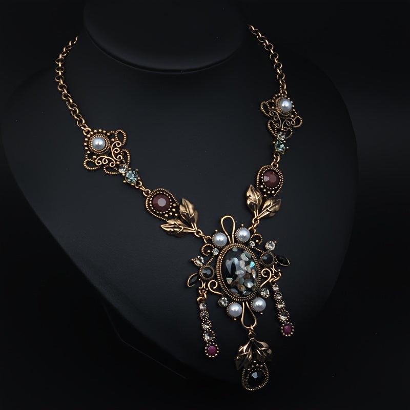 Elegant necklace featuring a layered design with synthetic gemstones for a glamorous touch. Perfect for parties, holidays, and everyday wear.