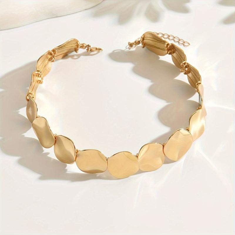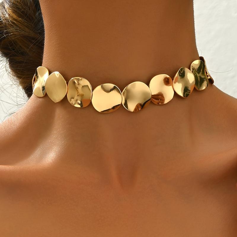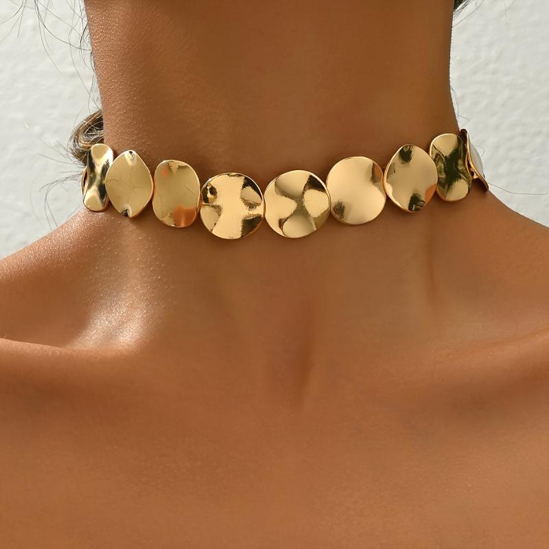 This choker necklace features a stylish geometric circle pattern, made of zinc alloy. It is perfect for daily wear or parties, adding a touch of vintage and minimalist style to your outfit. A versatile accessory suitable for all seasons.