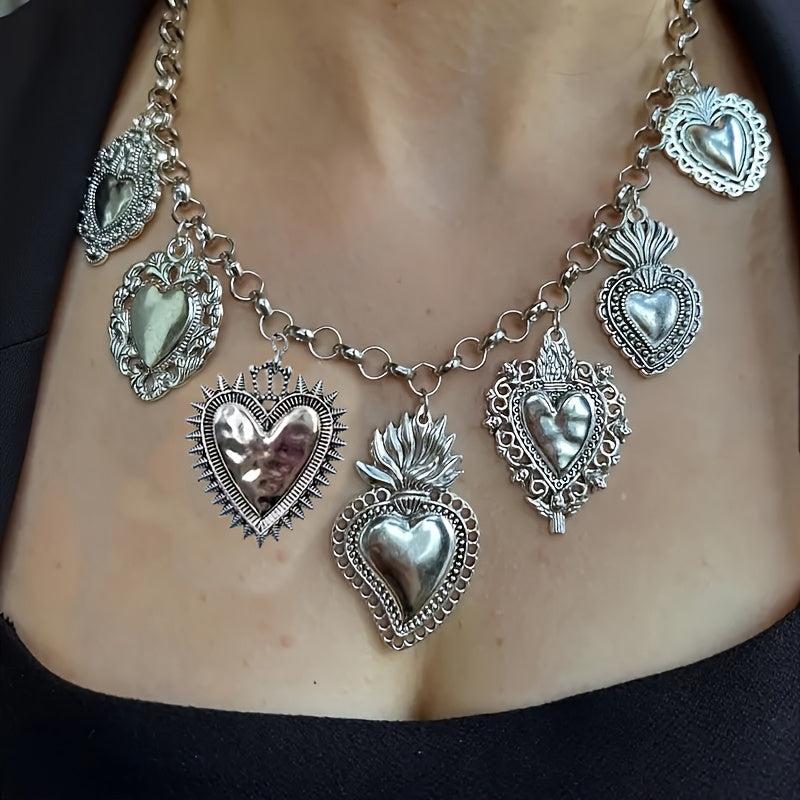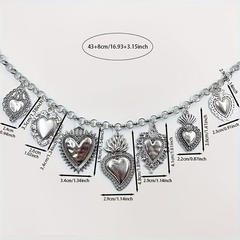 This vintage gothic heart flame pendant necklace is made of zinc alloy with no mosaic design, making it a versatile daily wear accessory ideal for gift giving.