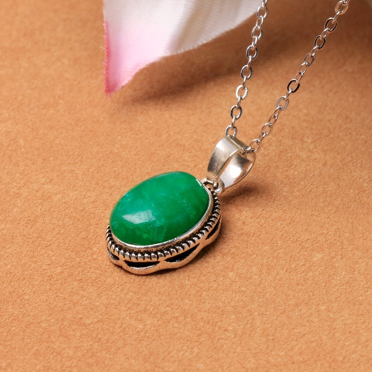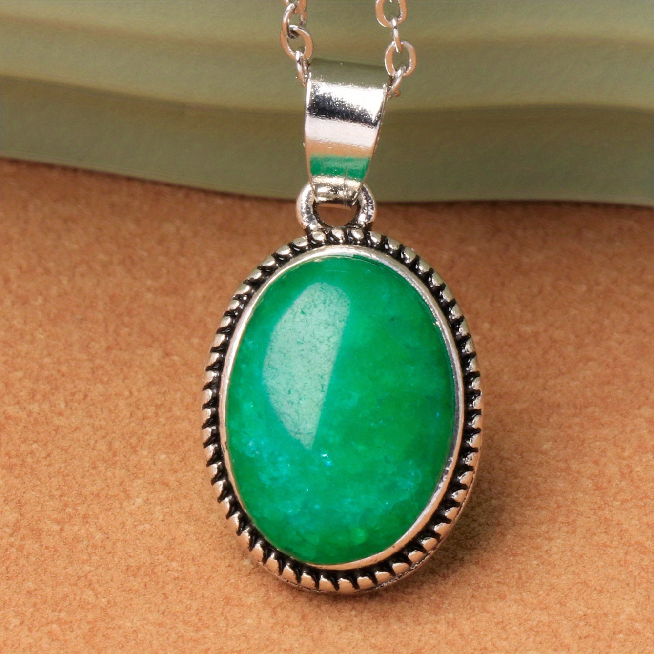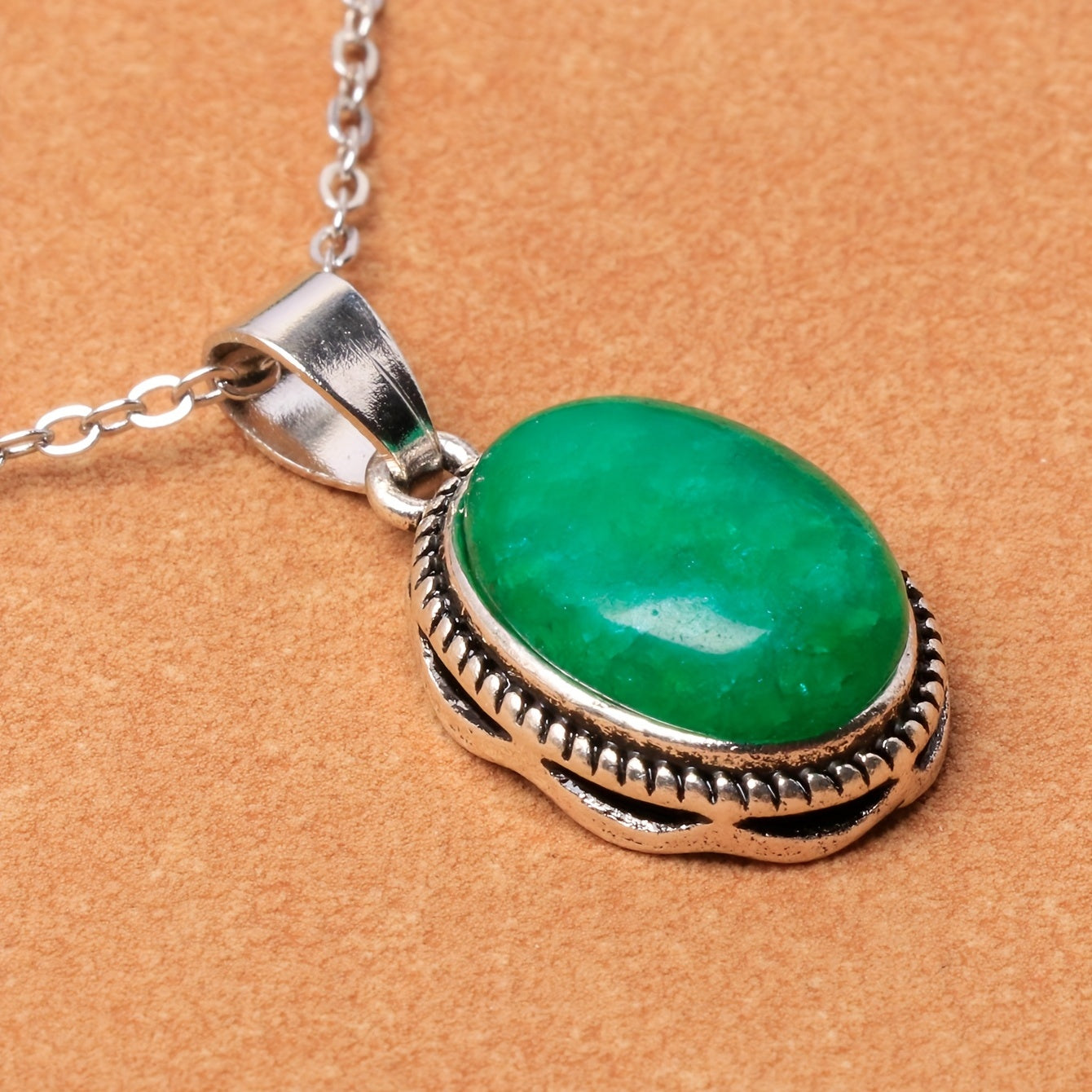 This elegant vintage necklace features a green jade gemstone pendant in an oval design. Perfect for adding a touch of classic style to your outfit.