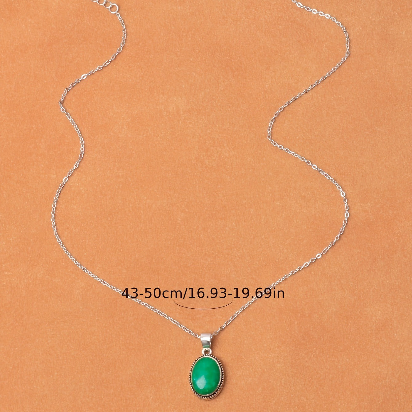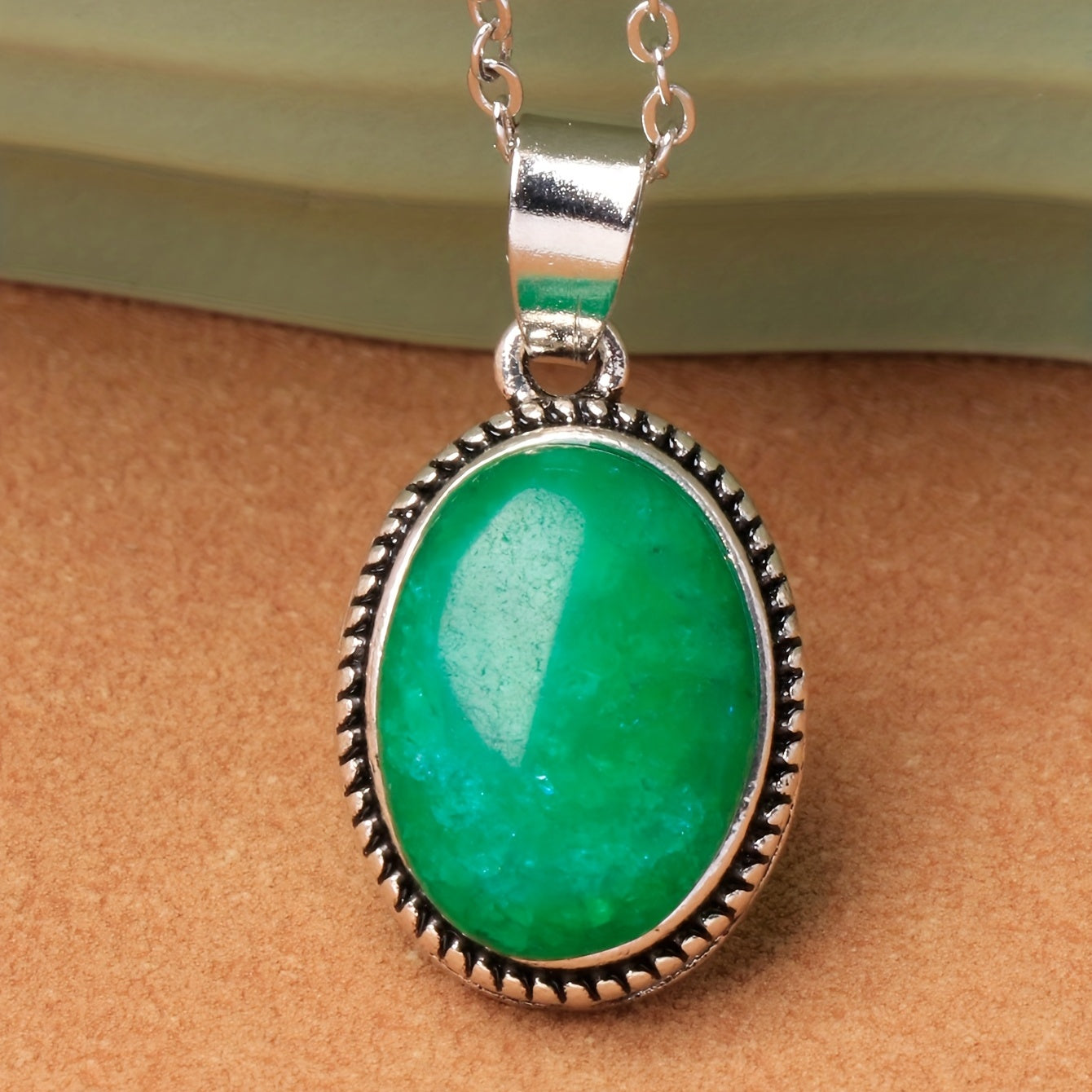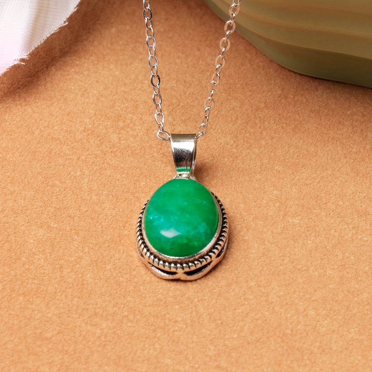 This elegant vintage necklace features a green jade gemstone pendant in an oval design. Perfect for adding a touch of classic style to your outfit.