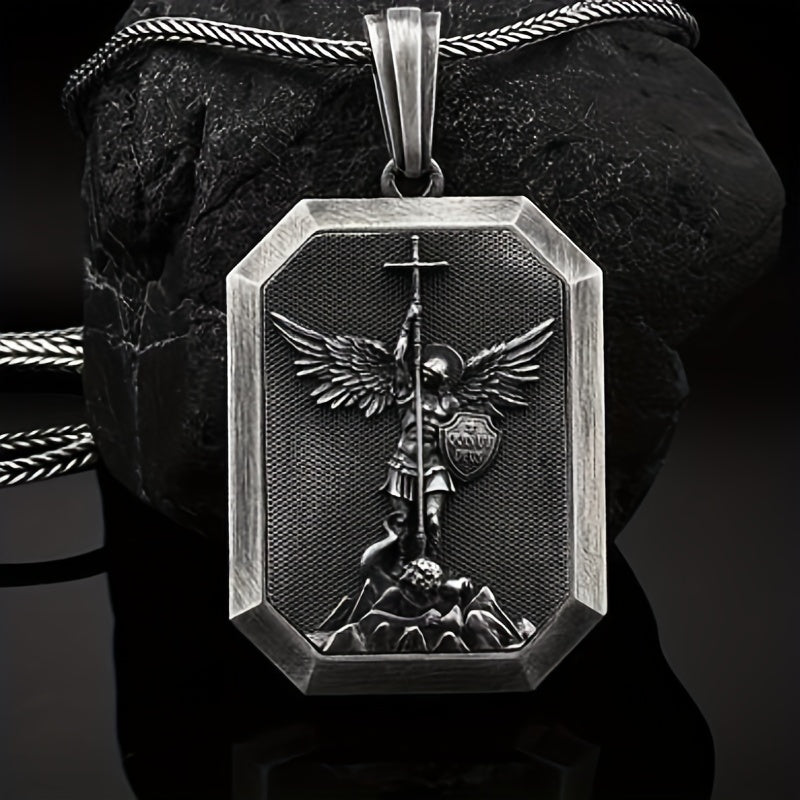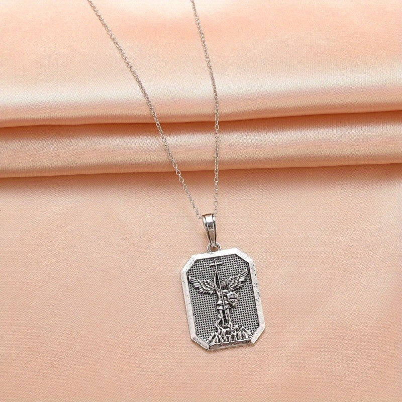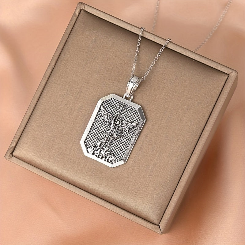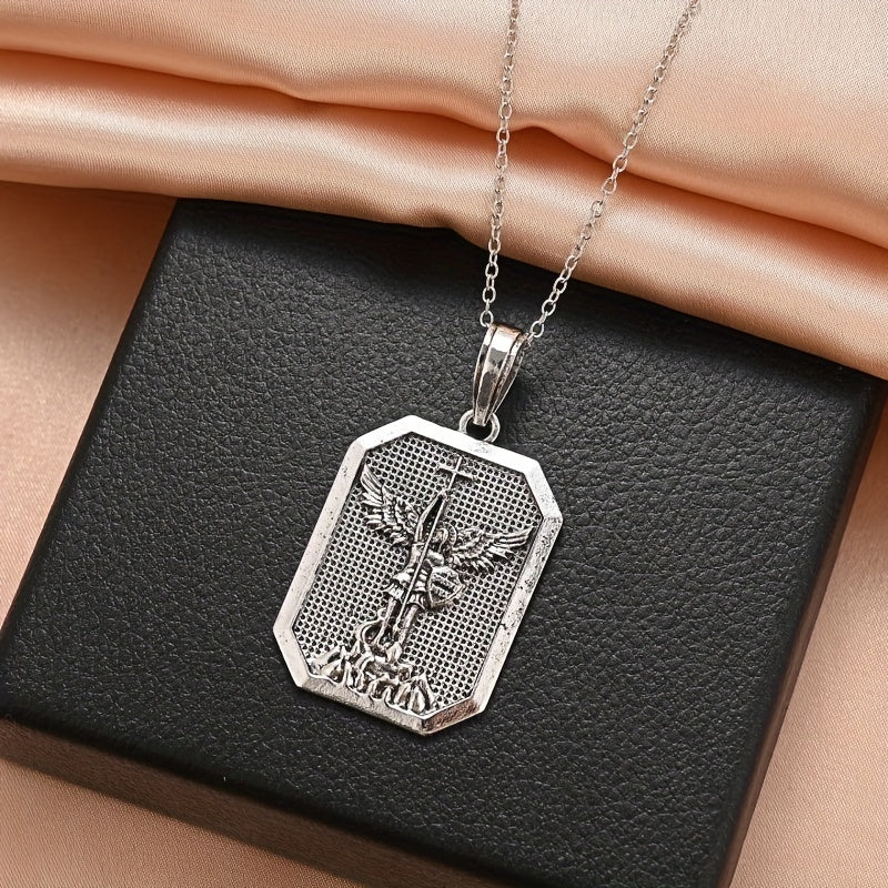 This delicate vintage pendant necklace features a holy angel design, making it a stylish and meaningful accessory for men.