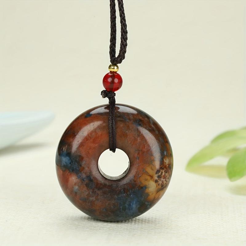 Embrace a stylish vintage look with this natural meteorite red Yiding peace pendant necklace. It is suitable for both men and women, making it a perfect holiday gift.