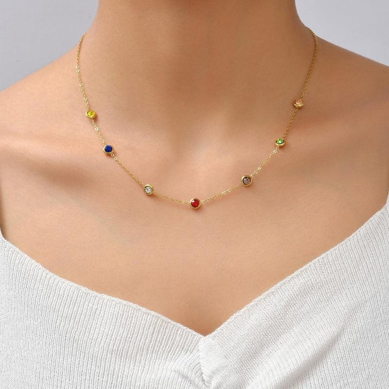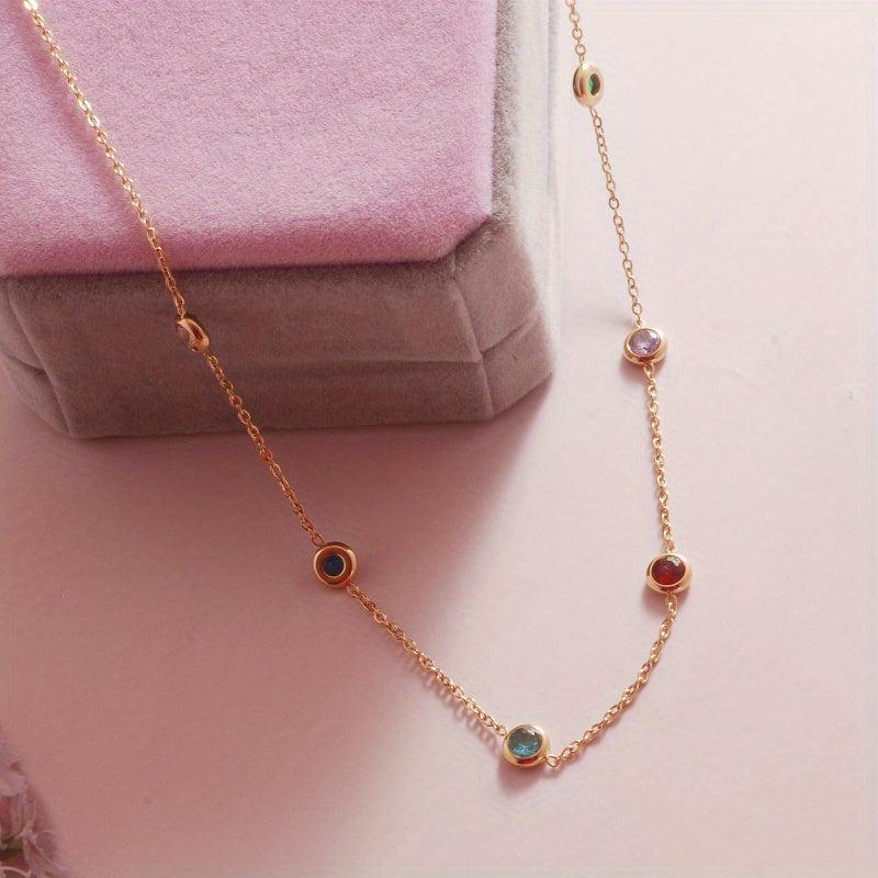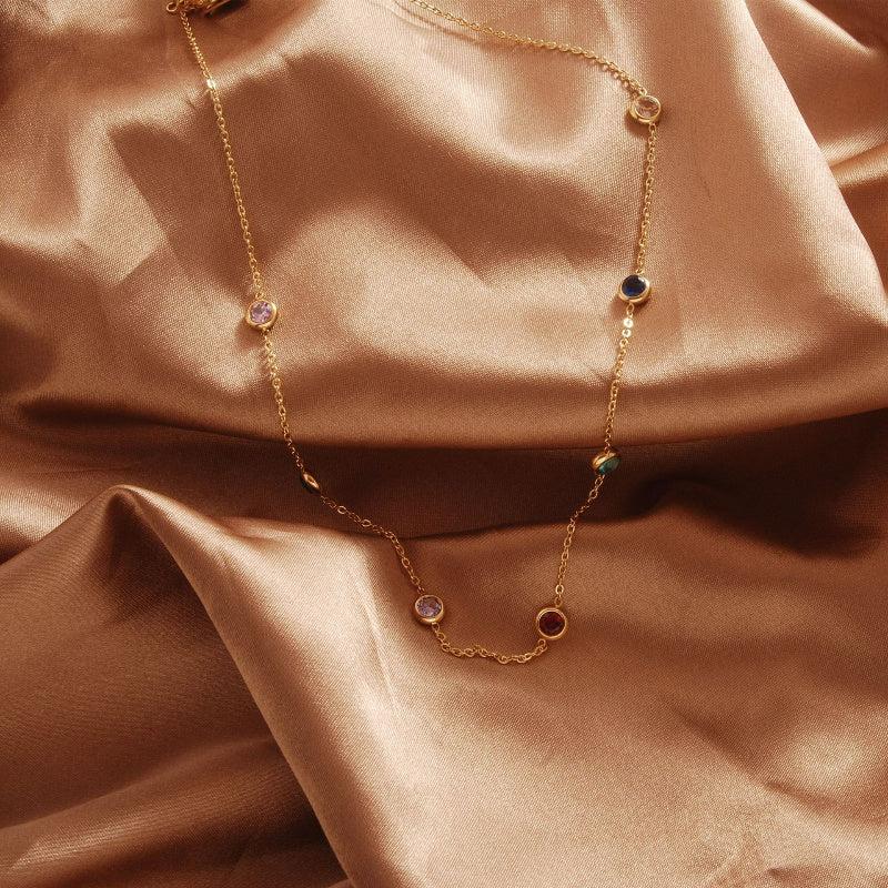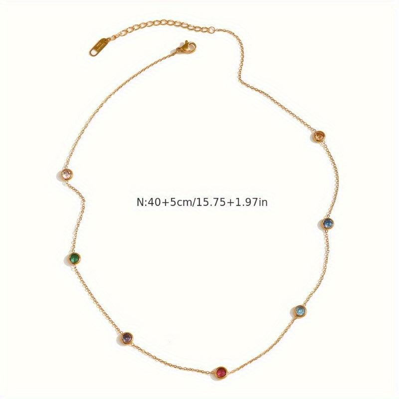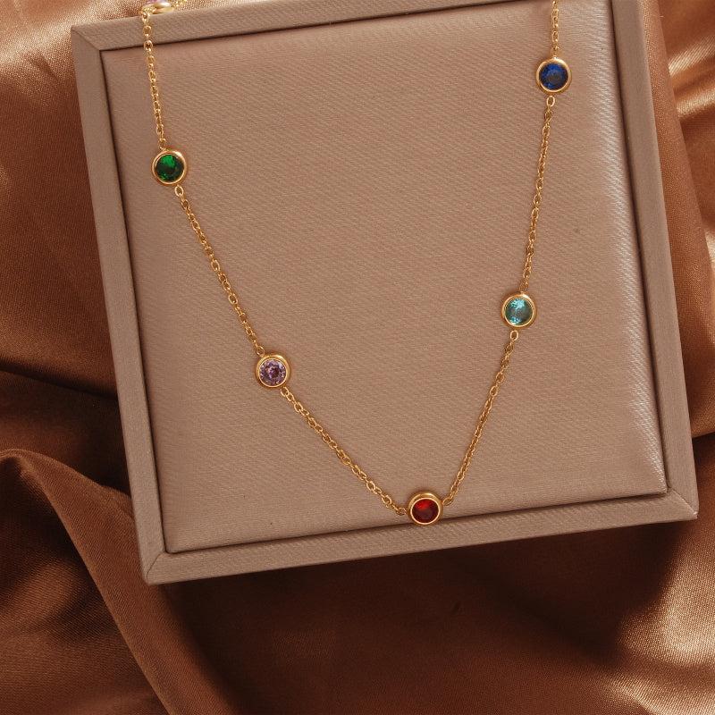 Vintage Rhinestone Necklace 18K Golden Plated Stainless Steel Gemstone Pendant