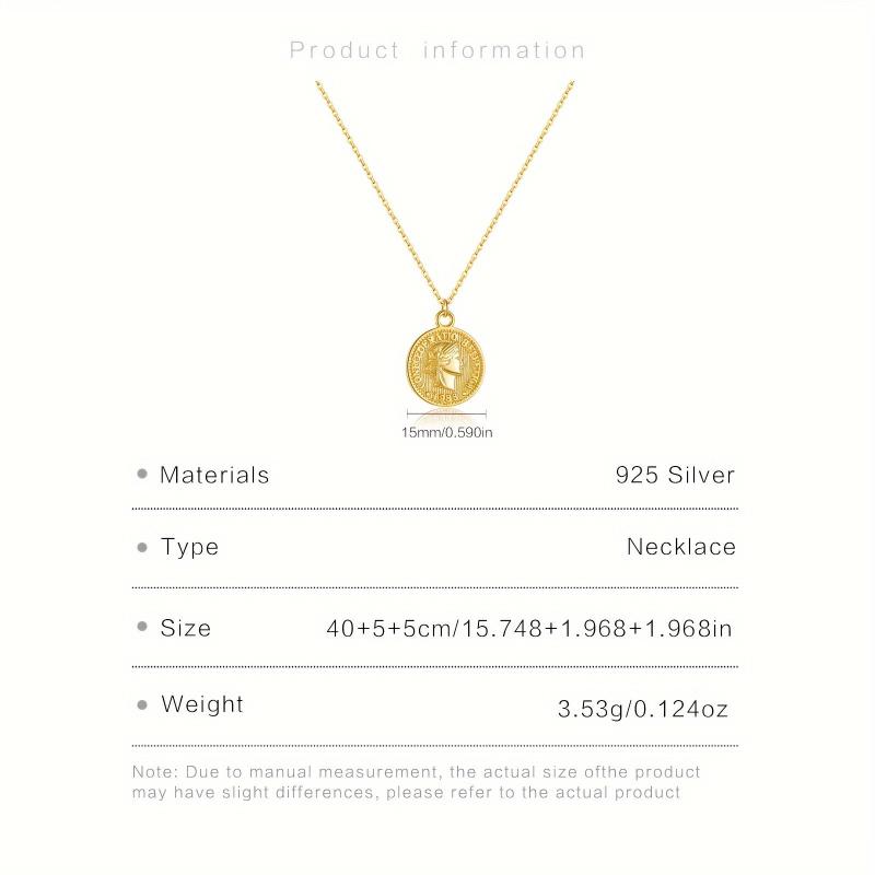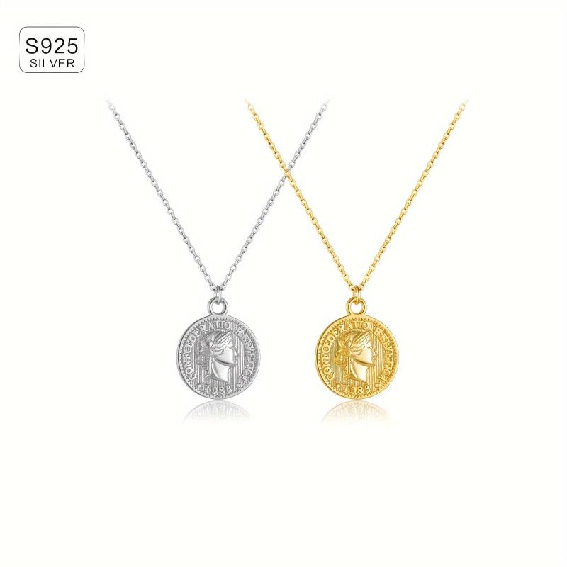 This necklace features a vintage inspired Roman coin pendant crafted from S925 sterling silver, adding a touch of classic elegance to your look. Perfect for daily wear or gifting occasions like Valentine's Day.