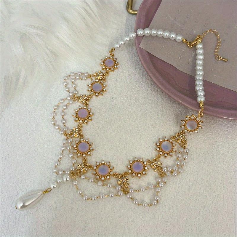 This vintage-inspired necklace features an irregular pendant in copper alloy with golden tone accents. Perfect for weddings, parties, daily wear, and special occasions.