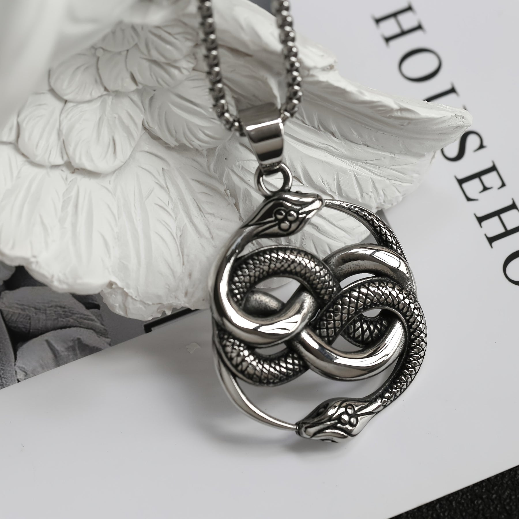 Add a touch of vintage charm to your look with this double snake pendant necklace. It's perfect for hip hop style enthusiasts.