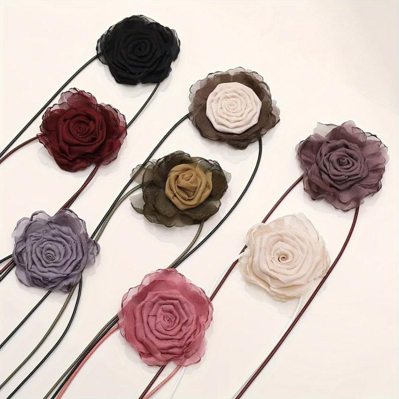 Add a touch of vintage charm to your outfit with this soft tulle flower choker necklace. Perfect for casual attire or special occasions.