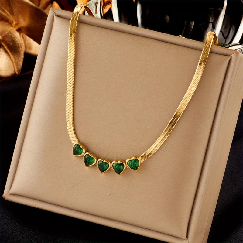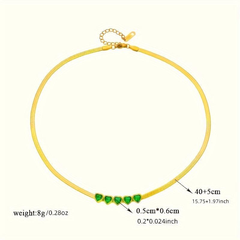 Unisex necklace suitable for daily wear and parties year round. Featuring a dark green heart-shaped glass pendant on a stainless steel chain.