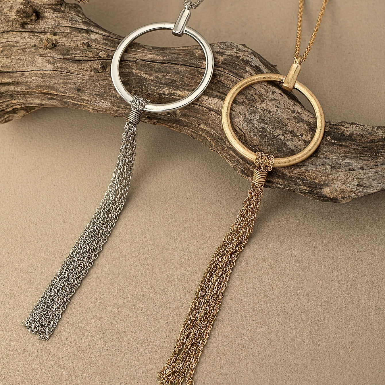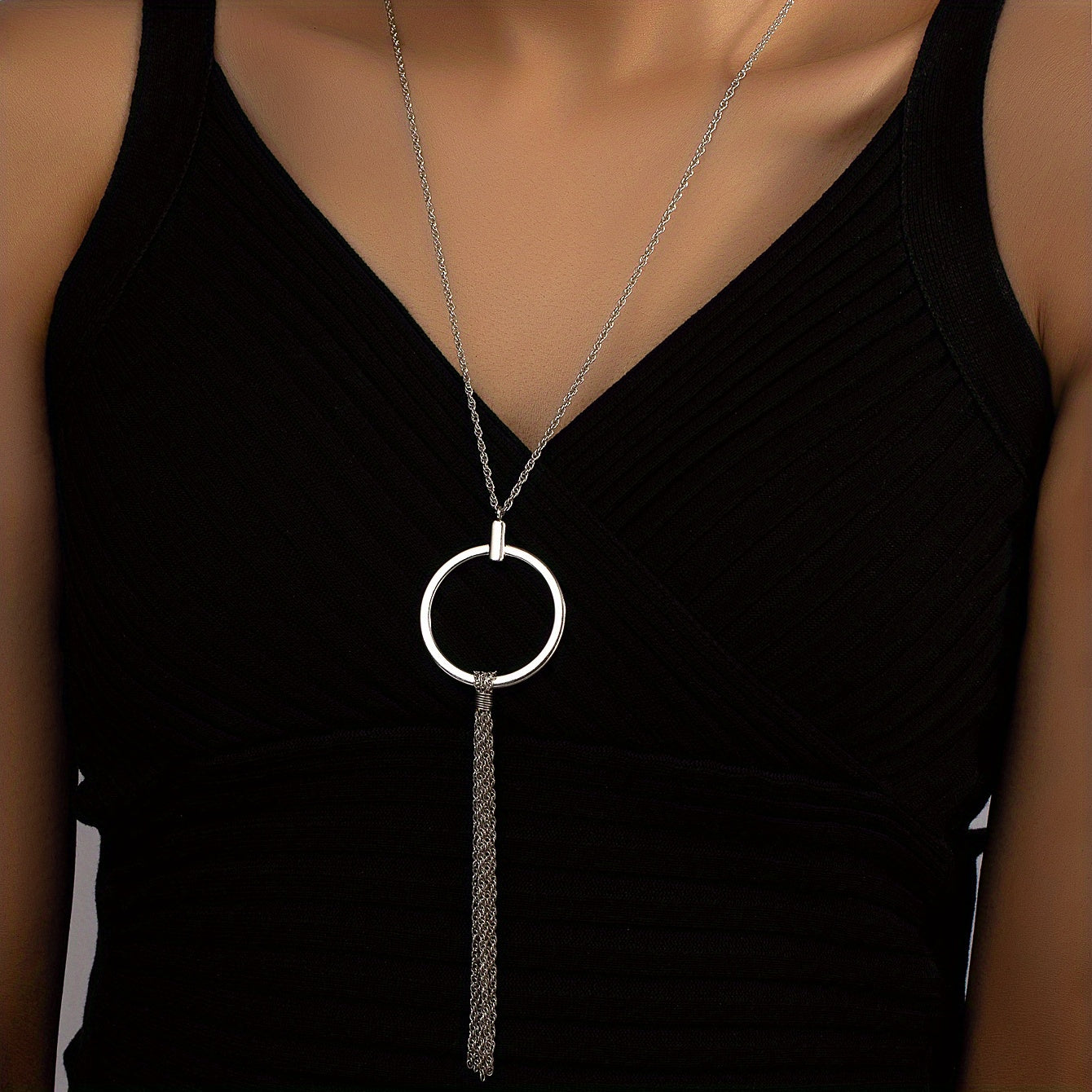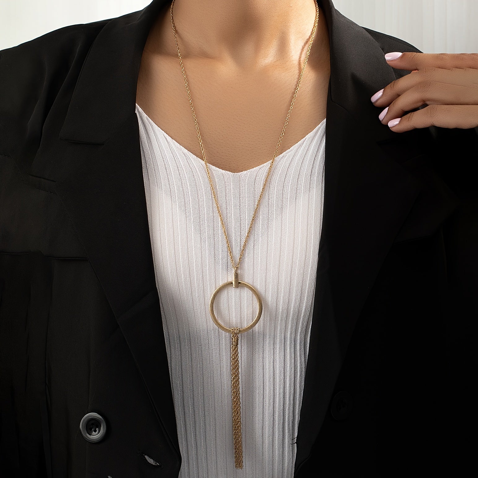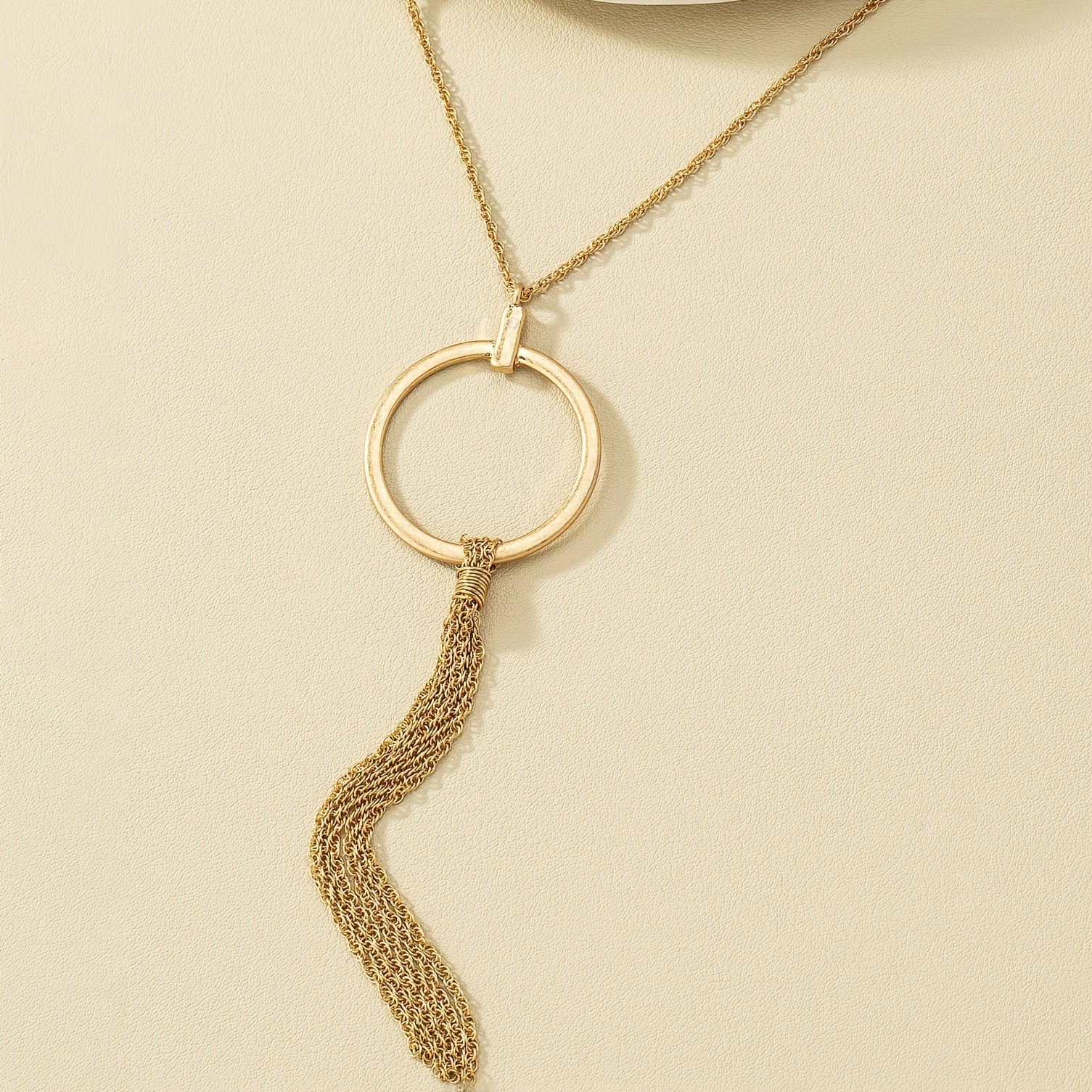 This vintage long tassel necklace is an elegant addition to your accessories. It features a 14K gold plated chain that adds a touch of sophistication to your look.