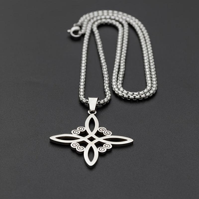 Intricate witchcraft polished stainless steel necklace perfect for any occasion.