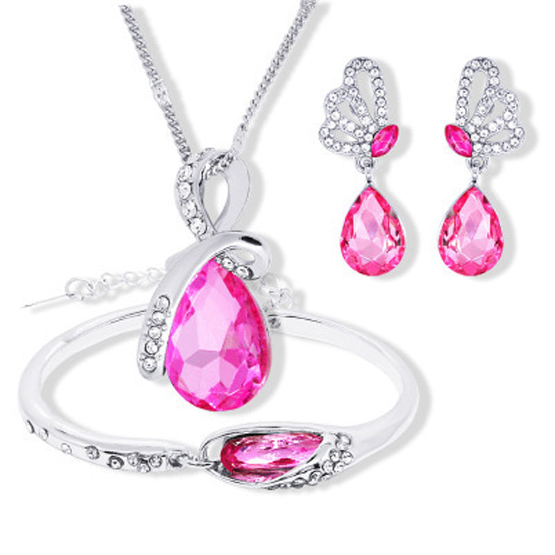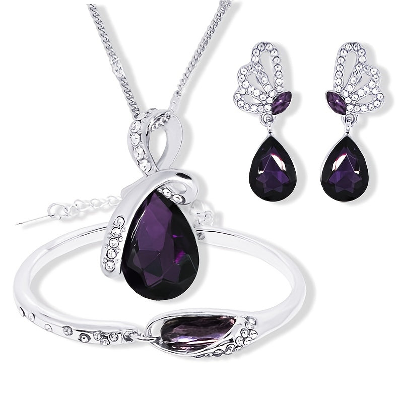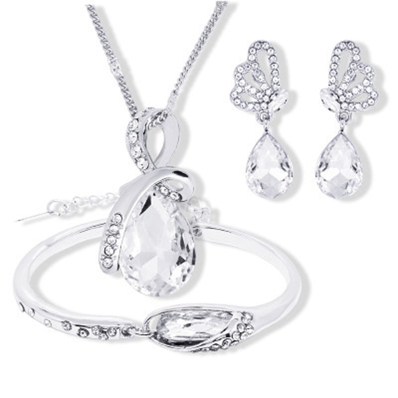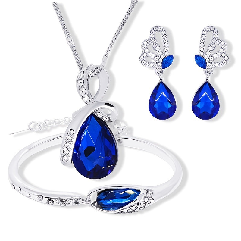 Adorn yourself with this elegant set featuring a water drop necklace and sparkling butterfly earrings made with angel tear crystal.