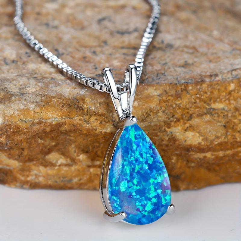 Elevate your style with this stunning water droplet opal pendant necklace. Its three-claw setting adds a touch of sophistication to any outfit, making it the perfect accessory for everyday wear or special occasions.