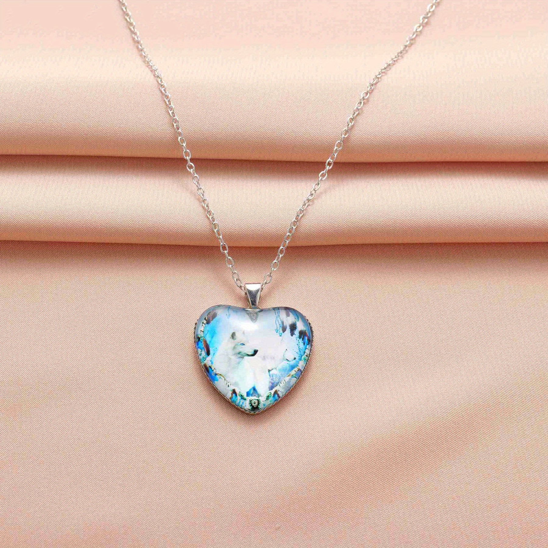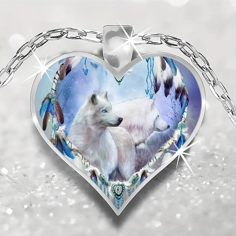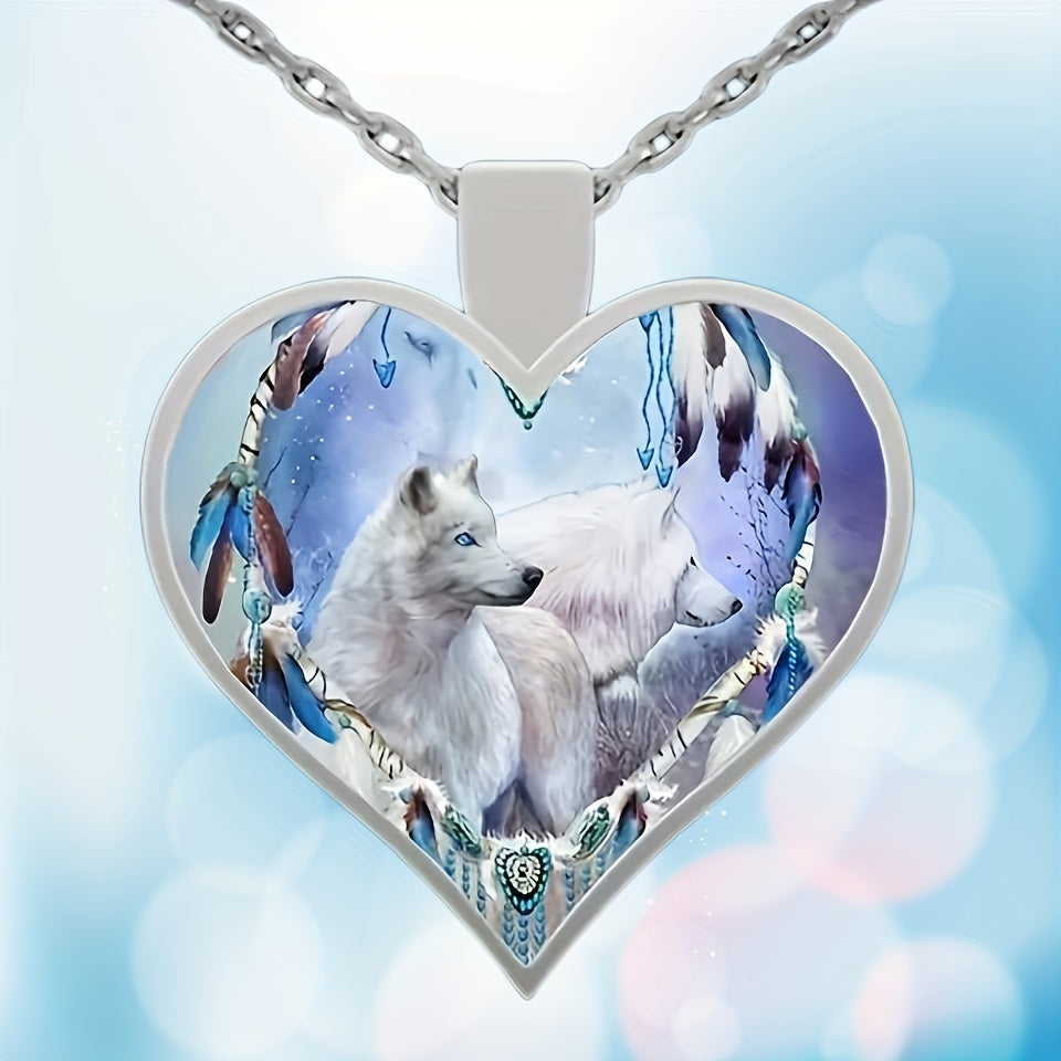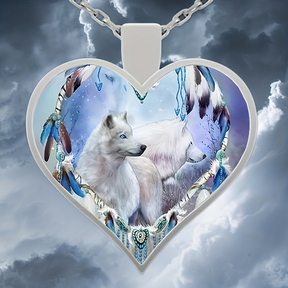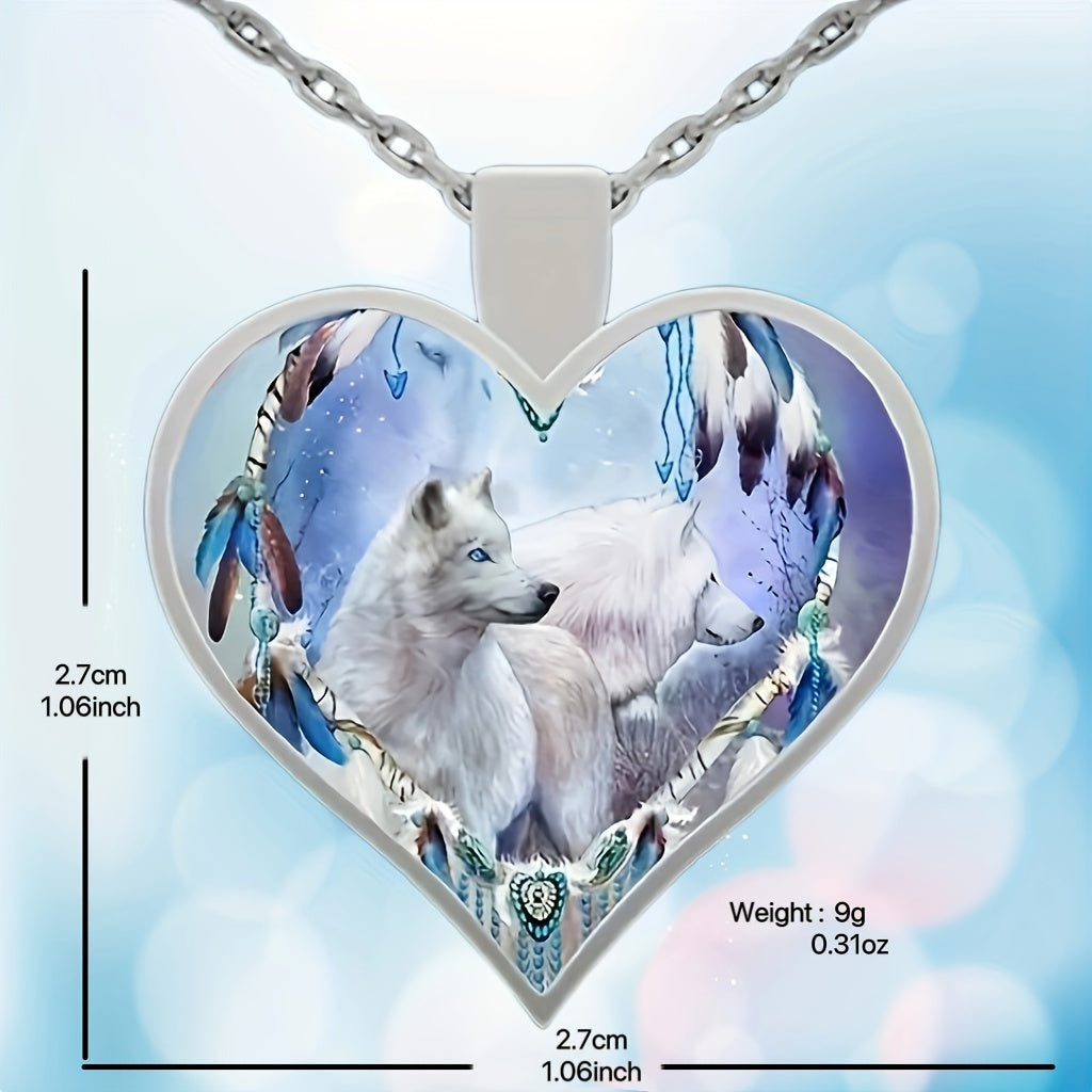 This stylish heart-shaped wolf pendant necklace is made from zinc alloy, making it a fashionable accessory for men. It's a great gift idea for couples or women.