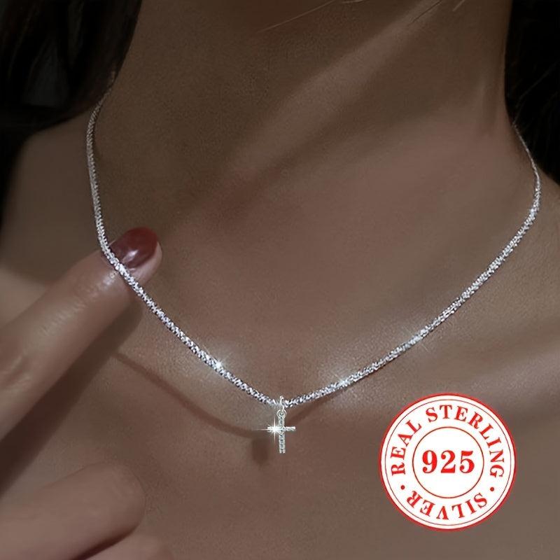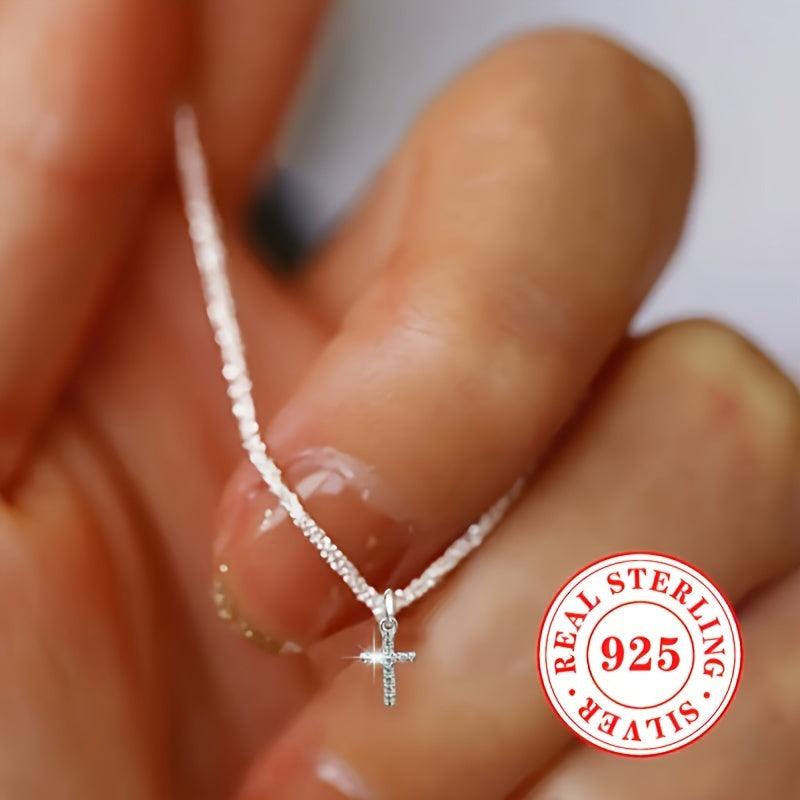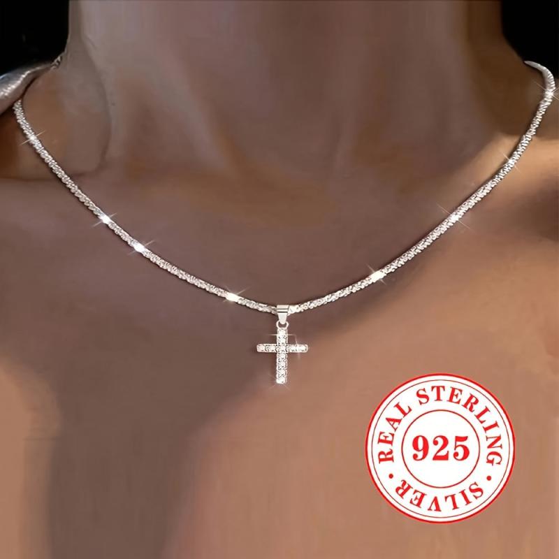 This stunning pendant necklace features a dense synthetic zirconia cross pendant on an S925 sterling silver chain. Perfect for daily wear and vacation outfits.