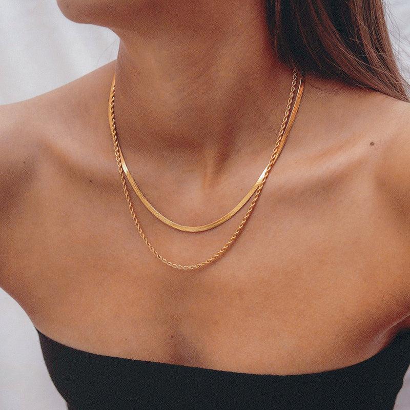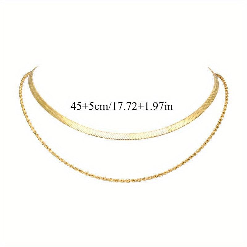 This stylish necklace features a double layer design with a snake chain made of high-quality stainless steel. The braided flat link layers add a unique and elegant touch to any outfit.