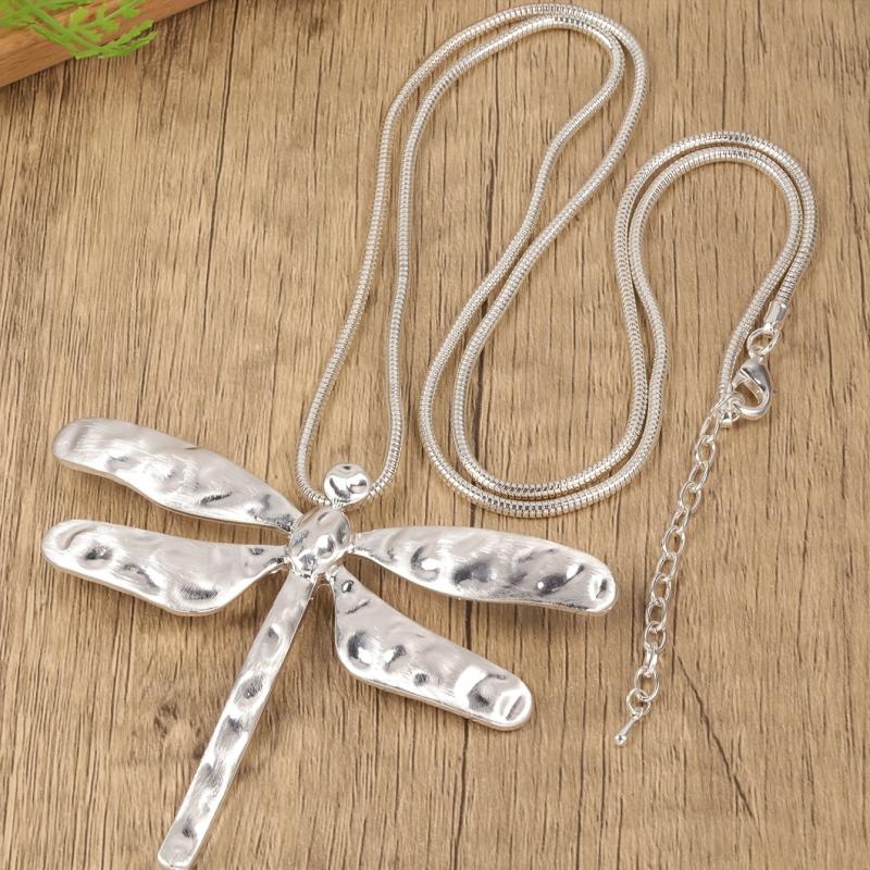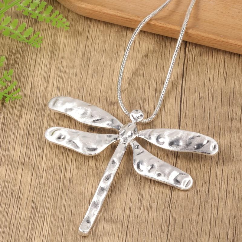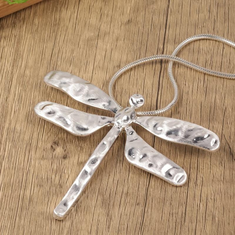 Elegant and vintage, this zinc alloy necklace features a hollow-out dragonfly pendant on a silver snake chain. Perfect for a Bohemian look or as a thoughtful gift for a mother.
