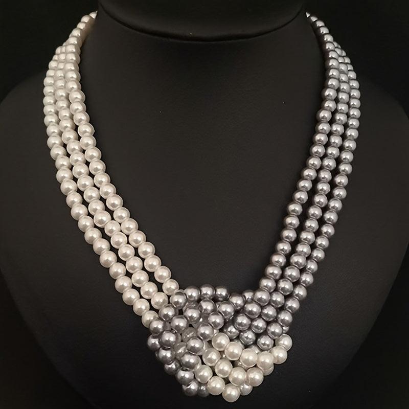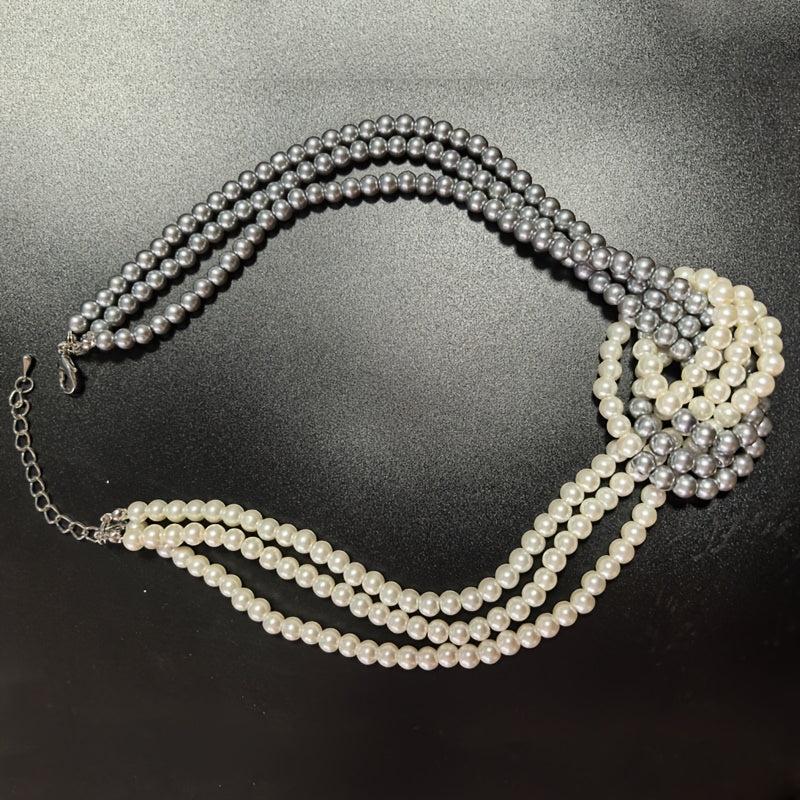 Elevate your look with this versatile necklace featuring minimalist glass beads and gray pearlescent layers. Perfect for everyday wear or special occasions.