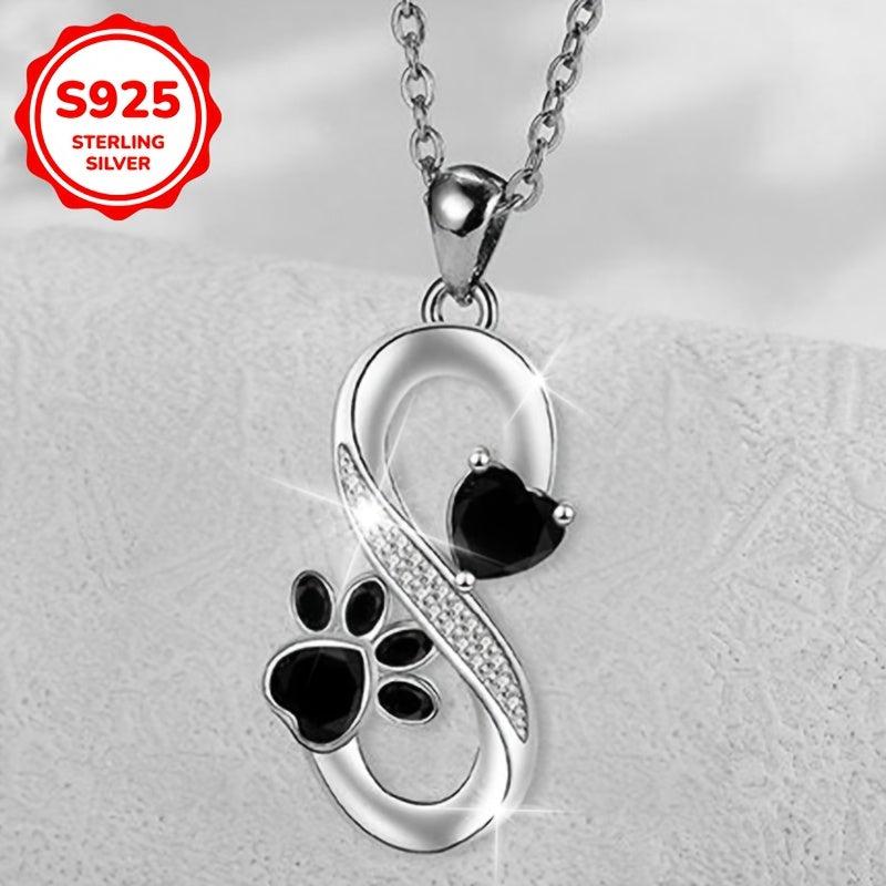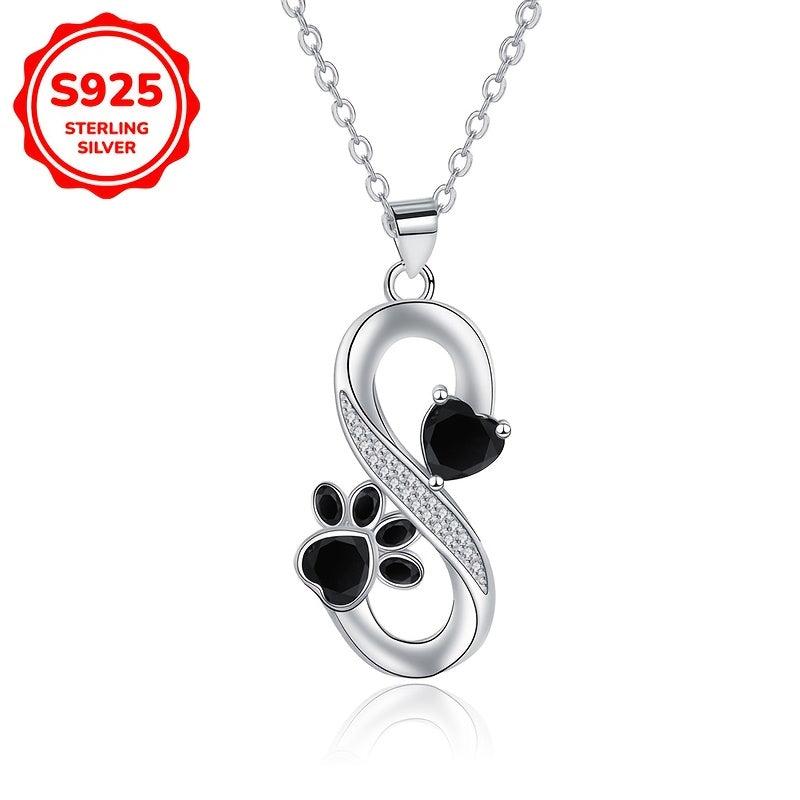 Women's Infinity Love Necklace Dog Paw Print 925 Silver Gift